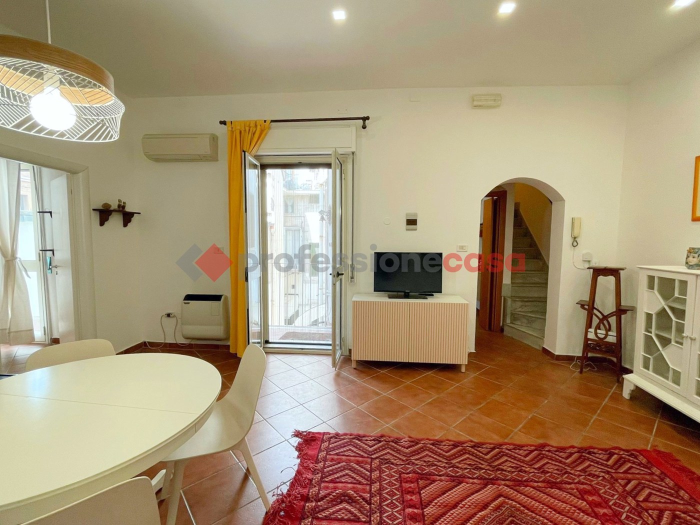 Tribunale Via Francesco Crispi: a pochi passi dal Corso Italia, al primo piano di uno stabile in buone condizioni, proponiamo in locazione un appartamento di 4 vani che sviluppa una superficie catastale di 80 MQ distribuita su due livelli: al piano di sbarco ci accoglie un ampio soggiorno, angolo cottura, bagno ospiti ed una prima camera da letto; tramite una comoda scala interna accediamo ad un disimpegno che consente lingresso ad una seconda camera da letto, bagno con doccia e ad un secondo ambiente che si presta perfettamente come cabina armadio.