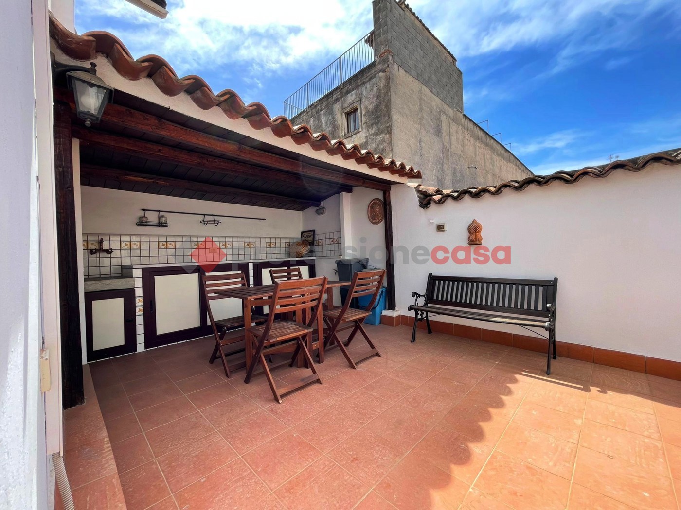 Completa la proposta un terrazzo attrezzato e parzialmente coperto da una tettoia, ideale per trascorrere piacevoli momenti in compagnia.