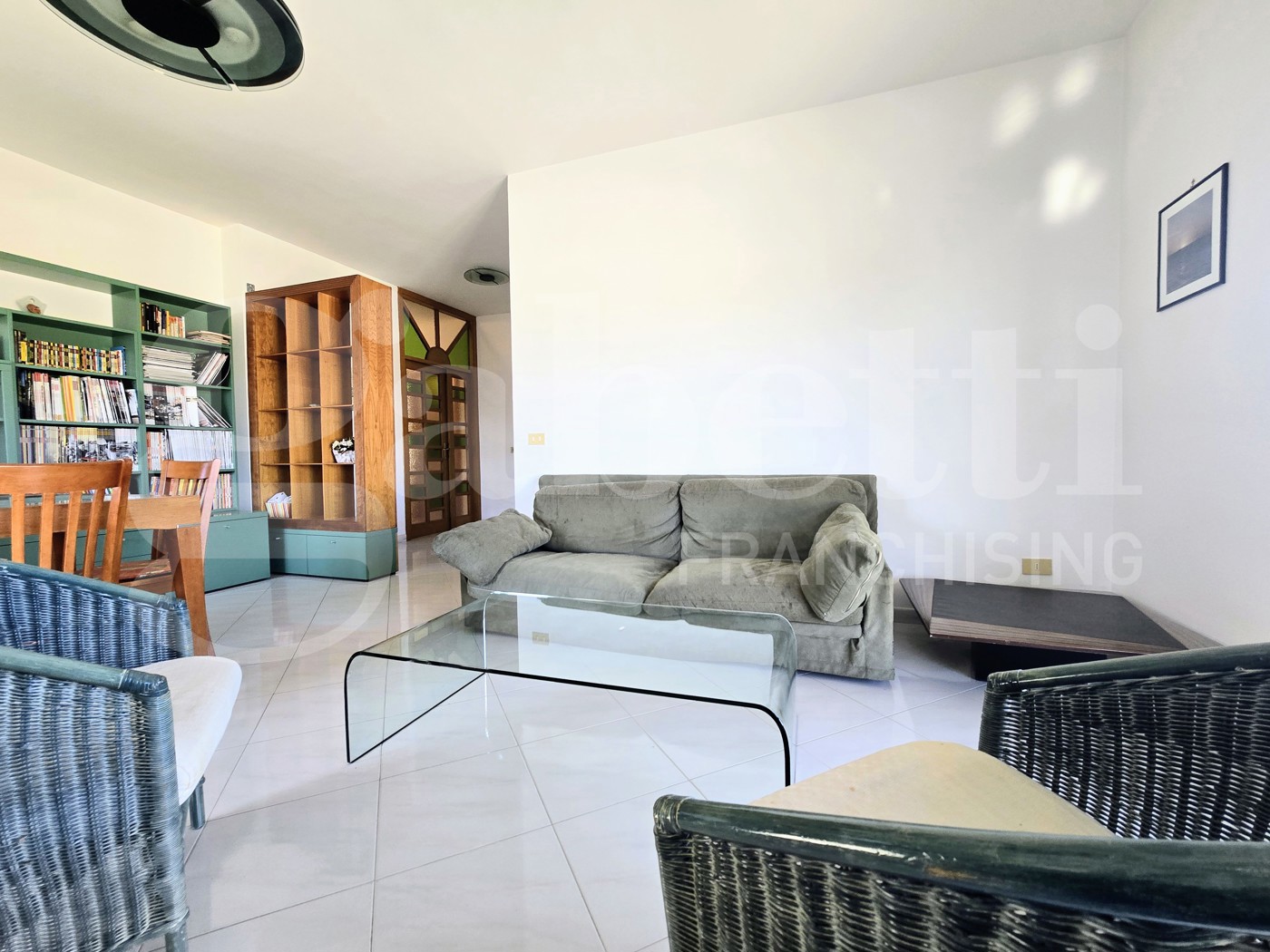 Completamente arredato, l'immobile composto da un ampio ingresso, un grande salone con camino, una cucina abitabile, tre camere da letto, due bagni, un grande terrazzo panoramico, due balconi e un posto auto. La posizione centrale offre la comodit di avere caff, supermercati, ristoranti, cinema, negozi e pub nelle vicinanze.