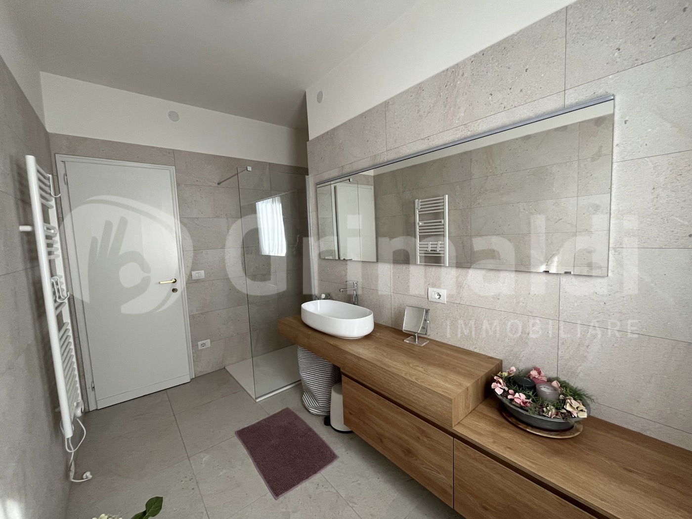Ingresso nell'ampio soggiorno con deliziosa zona pranzo, cucina separata abitabile, comodissima dispensa/ripostiglio, disimpegno zona note con 2 camere di cui una spaziosa camera matrimoniale con bagno padronale finestrato, camera singola con letto a una piazza e mezza, cabina armadi ben attrezzata e altro bagno completo.