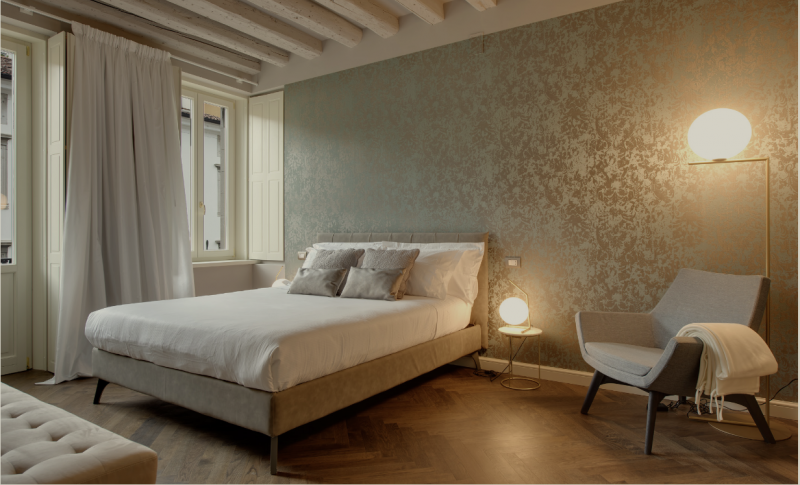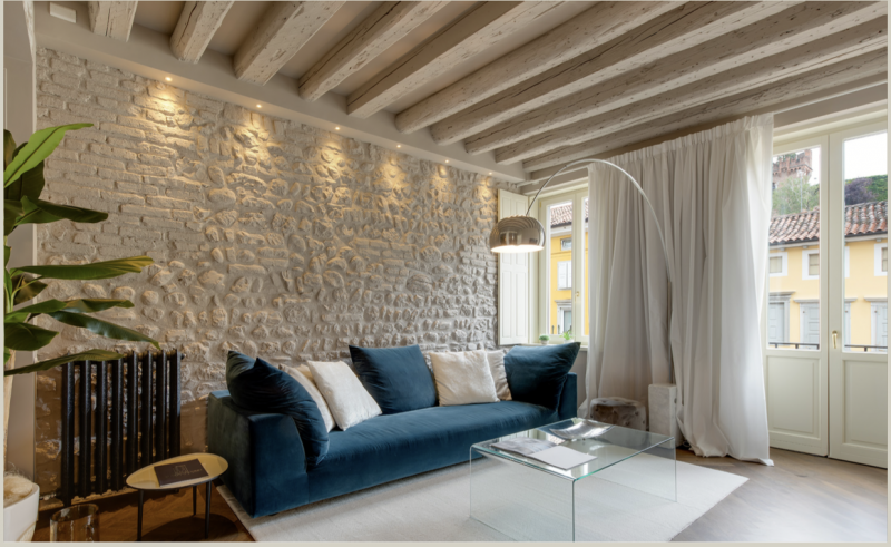 La presenza di un'affascinante terrazzino affacciato sul cuore di Udine e un cavedio interno garantiscono luce e ricambio daria agli ambienti centrali della casa, contribuendo al comfort abitativo.