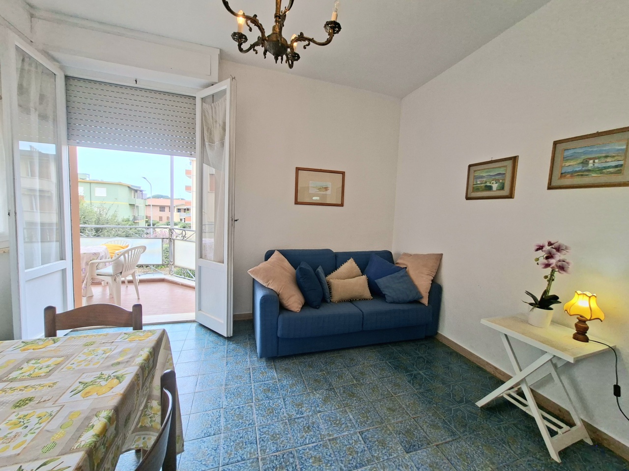 L'appartamento è sito al primo piano e mezzo, scalini bassi e molto comodi,composto da ingresso, cucina abitabile con terrazzo del servizio, ampia camera matrimoniale , camerina con due lettini, soggiorno con divano letto matrimoniale e terrazza abitabile parzialmente vista mare, bagno finestrato con la doccia.