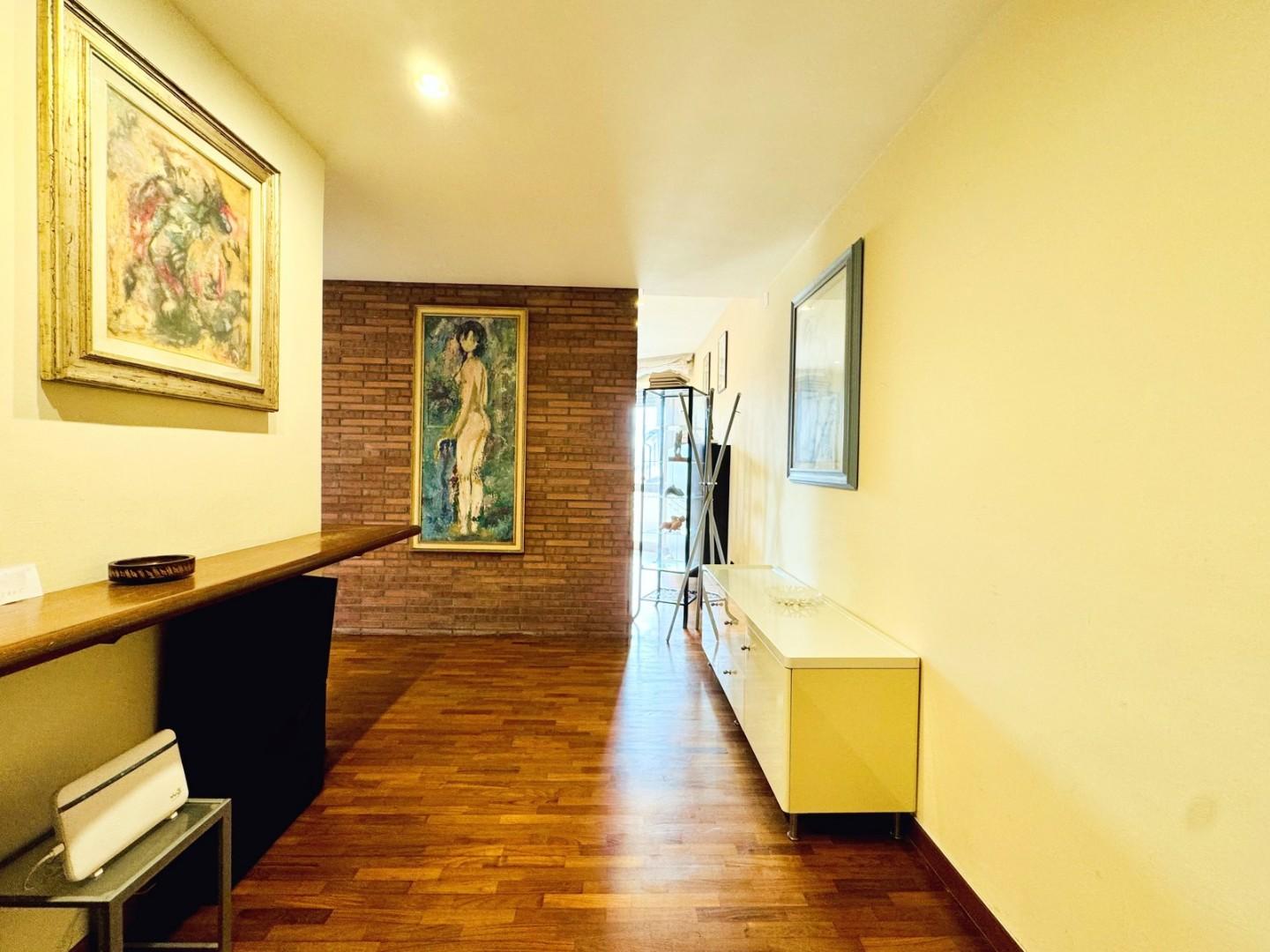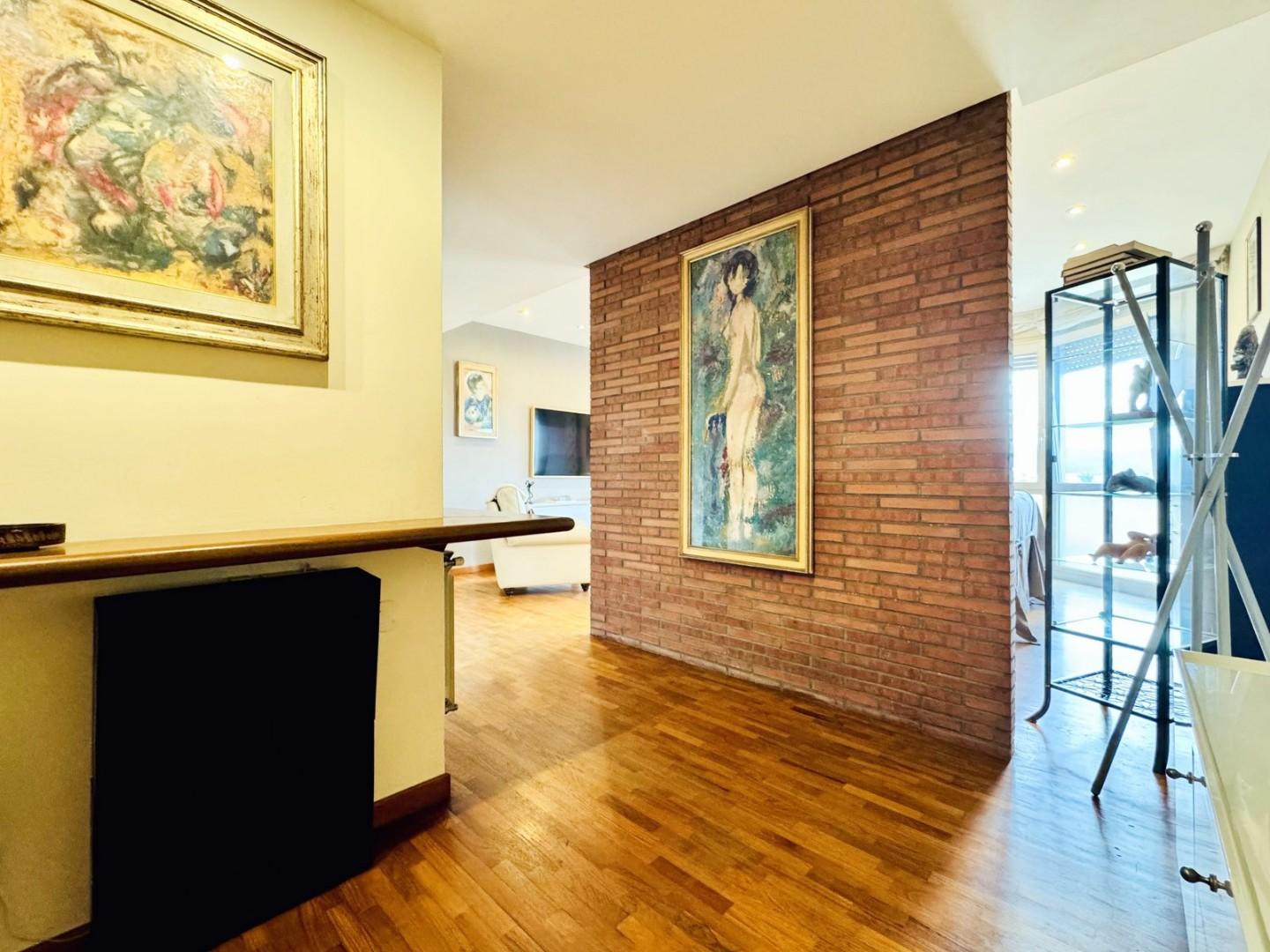 L'immobile si presenta luminoso e ben distribuito: un ampio ingresso introduce alla zona giorno caratterizzata da un grande soggiorno con parquet, dettagli in mattoni a vista e ampie finestre che conferiscono calore ed eleganza all'ambiente.
