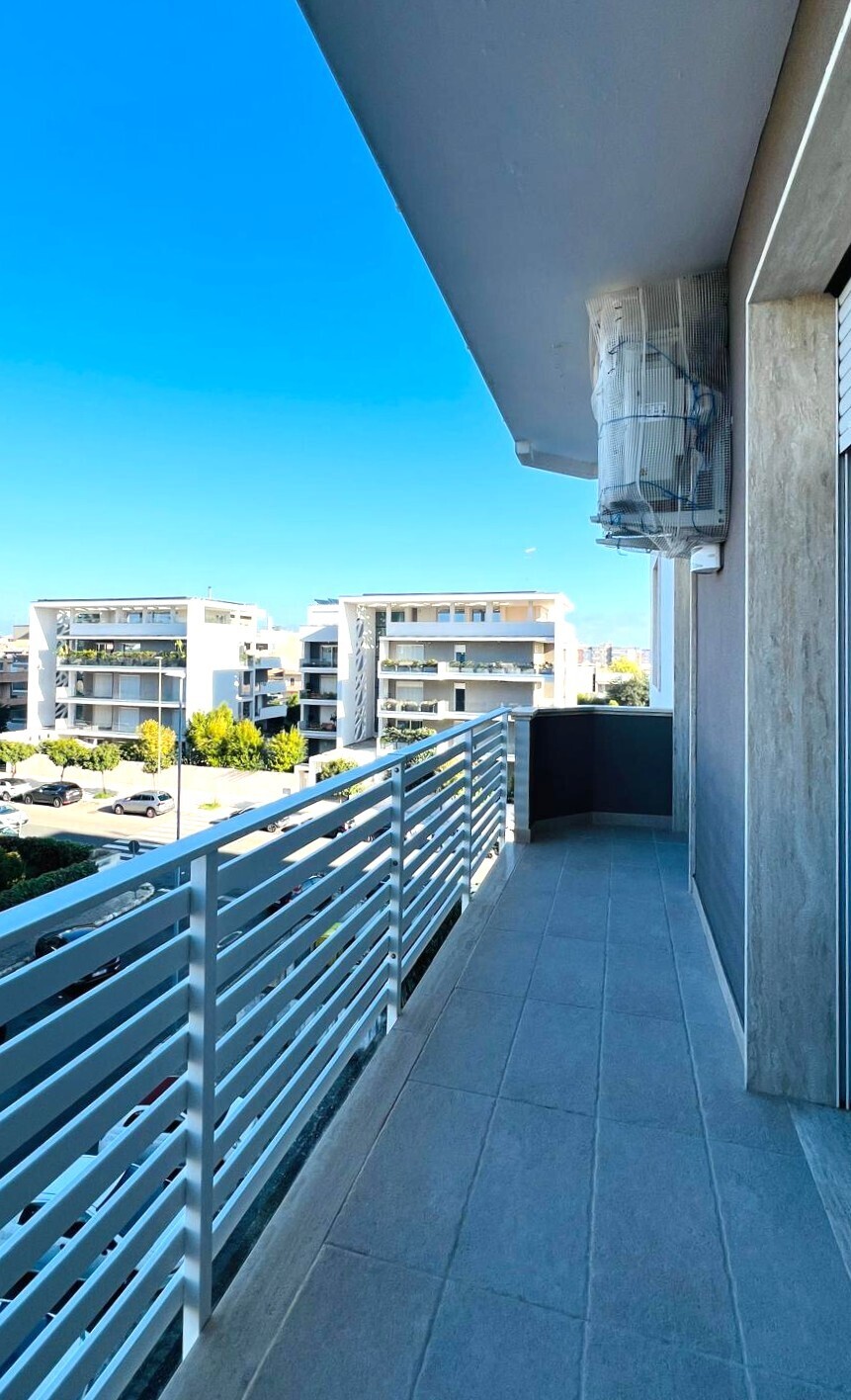 Limmobile ha una metratura commerciale di 105 mq circa e si compone di ingresso, soggiorno con accesso sul primo balcone, cucina abitabile con ripostiglio attiguo e accesso sul secondo balcone che affaccia su di un curato parco pubblico, un bagno, due camere da letto ed una ulteriore stanza studio/lavanderia.