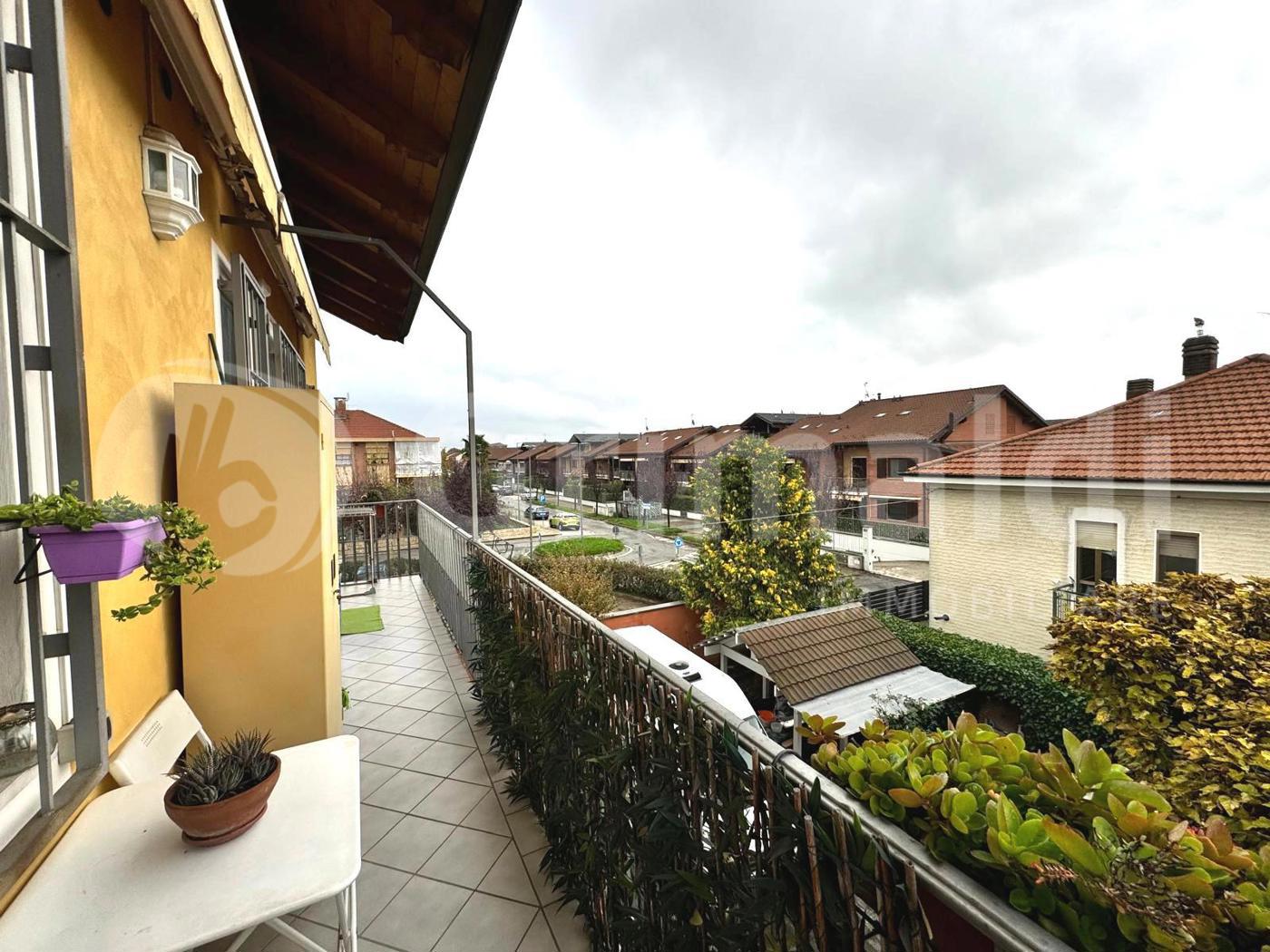 Borgaretto: in zona residenziale e signorile, appartamento in piccolo contesto di sole tre unit abitative, sito al piano 1° ed ultimo, disposto su due livelli, totalmente ristrutturato, composto da ingresso su soggiorno, cucina abitabile, servizio con antibagno, ripostiglio e ampio balcone con tende da sole motorizzate, al piano superiore collegato internamente da una comoda scala, disimpegno, due camere e servizio.