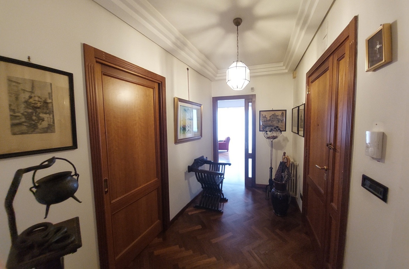Pavimenti in parquet massello Iroko, Infissi di ultima generazione con vetrocamera, Impianto di riscaldamento autonomo, Climatizzazione, Porte interne su misura e finitura artigianali.
