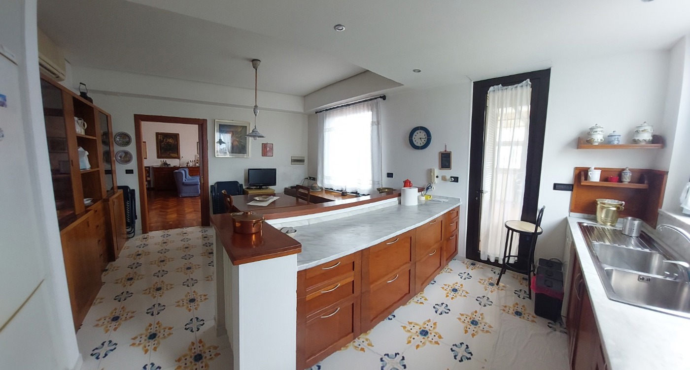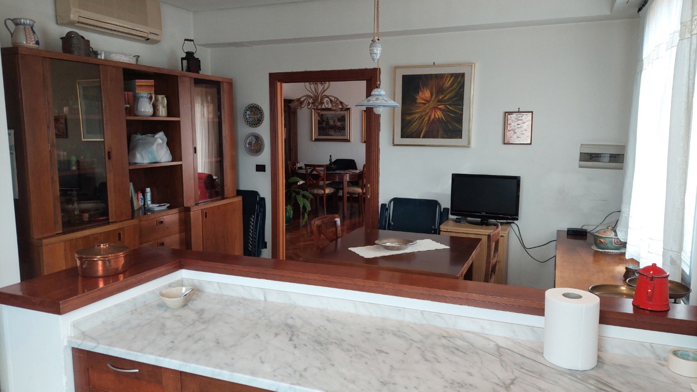 L'appartamento, nei pressi della stazione ferroviaria, costituito da ingresso, 4 vani, ampio soggiorno, cucina con annessa zona pranzo, doppi servizi, vano lavanderia, e ripostiglio.