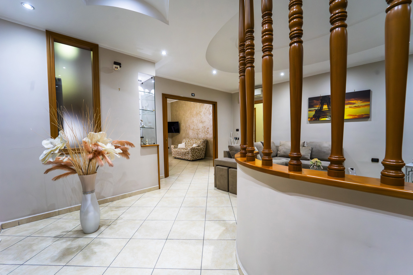 L ingresso si apre su un ampio salone, capace di accogliere sia una zona relax che unarea dedicata all intrattenimento.