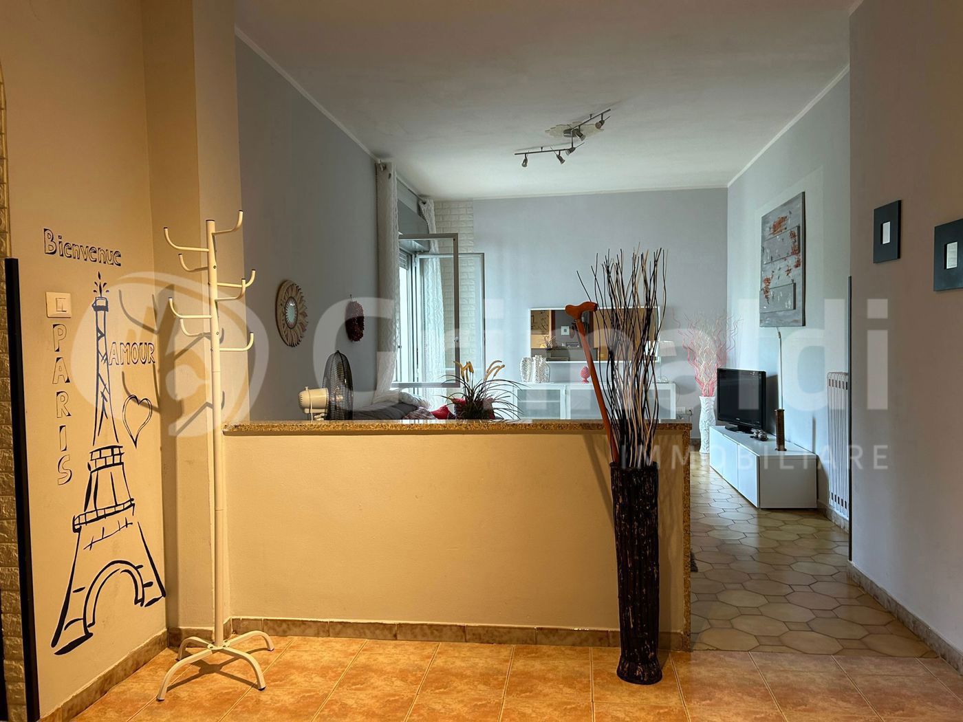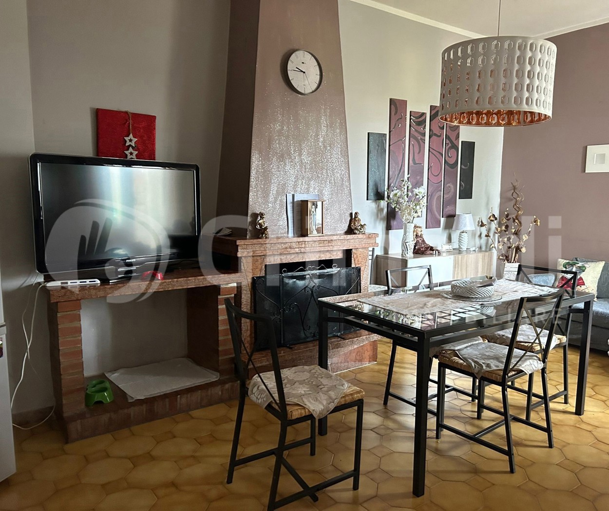 L'appartamento composto da ampio salone, cucina/tinello con camino, due camere da letto e due bagni oltre balconi.