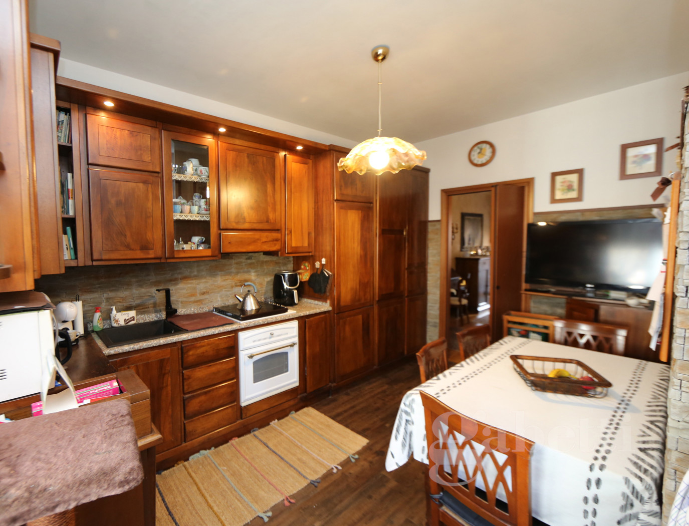 La cucina abitabile, affacciata su un balcone privato, ideale per godersi momenti di relax allaperto.
