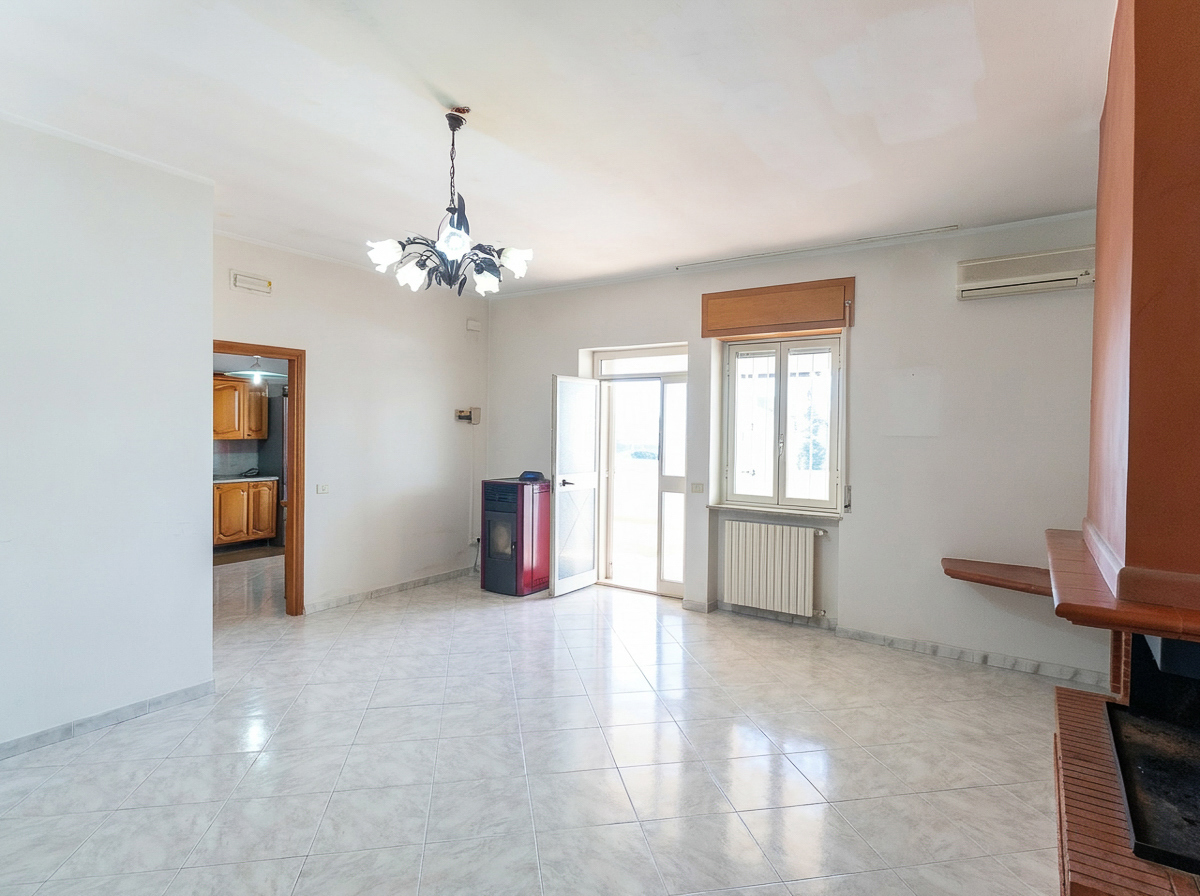 La zona giorno con camino diventa il cuore della casa: dinverno scalda le serate, destate fa da contrasto perfetto alle giornate di mare. la casa dove rientri con la sabbia ancora addosso e ti senti subito nel posto giusto.
