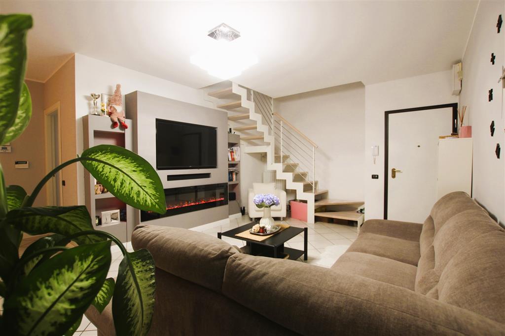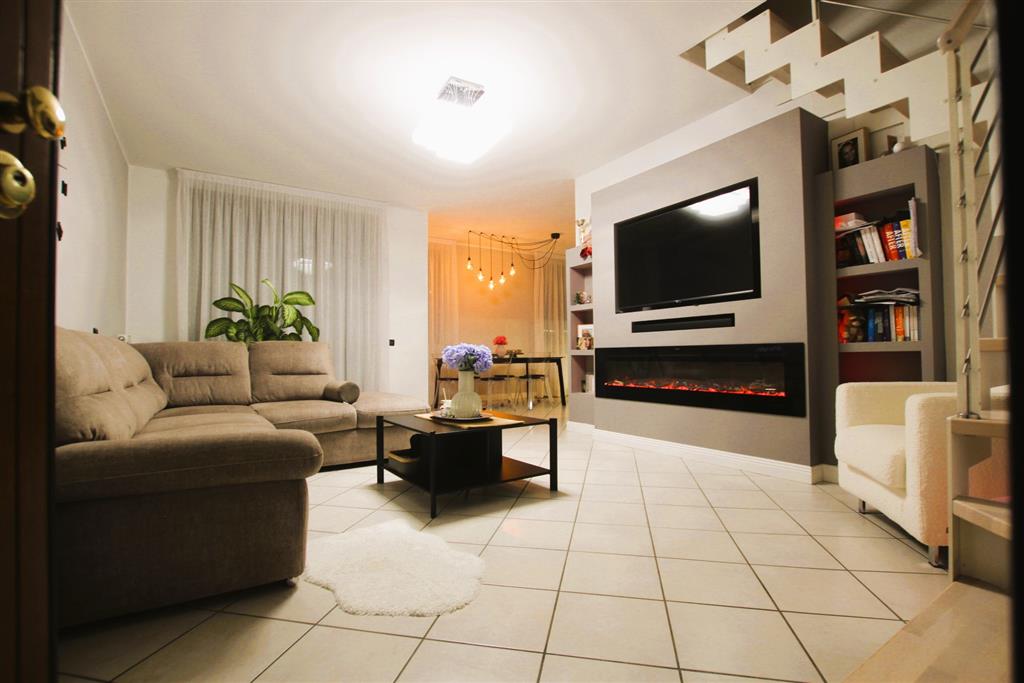QUATTRO LOCALI Briosco - ubicato in una cornice verde e silenziosa, dove il tempo sembra rallentare, ti aspetta questo appartamento su due livelli costruito nel 2005, con facciata in parte in mattoni a vista: un dettaglio che racconta subito carattere e cura. Al primo piano, i 72 mq si aprono su un soggiorno luminoso impreziosito da un camino elettrico, perfetto per creare un’atmosfera calda e accogliente nelle serate di relax.