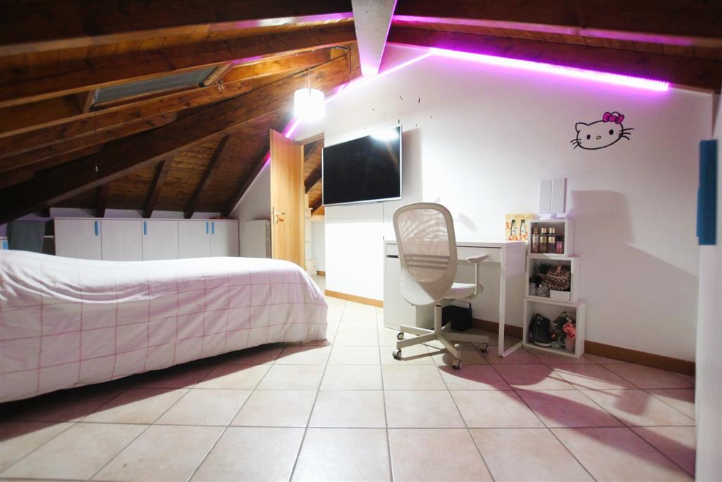 Salendo la scala interna, si scopre la parte più intima della casa: una mansarda ampia e vivibile con due camere spaziose e un secondo bagno, ideale per famiglia, lavoro da casa o ospiti.