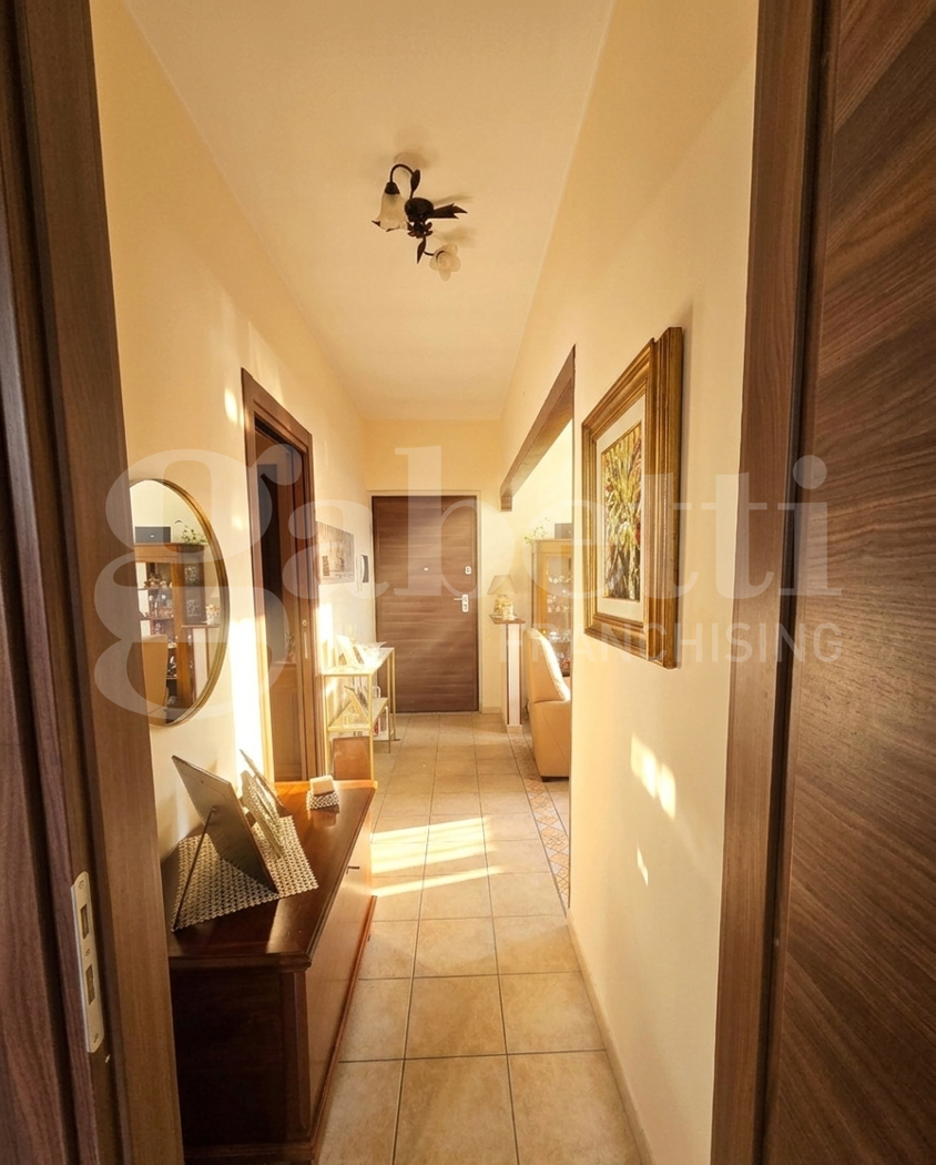 L'appartamento si distingue per un'ottima distribuzione degli spazi su un unico livello: l'area living spaziosa e luminosa, arricchita da una cucina moderna con dispensa separata, fondamentale per l'organizzazione quotidiana.