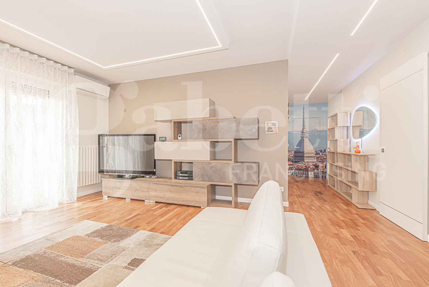 Le finiture di pregio, come la controsoffittatura con luci a led, ed il parquet uniforme valorizzano tutti gli ambienti.
