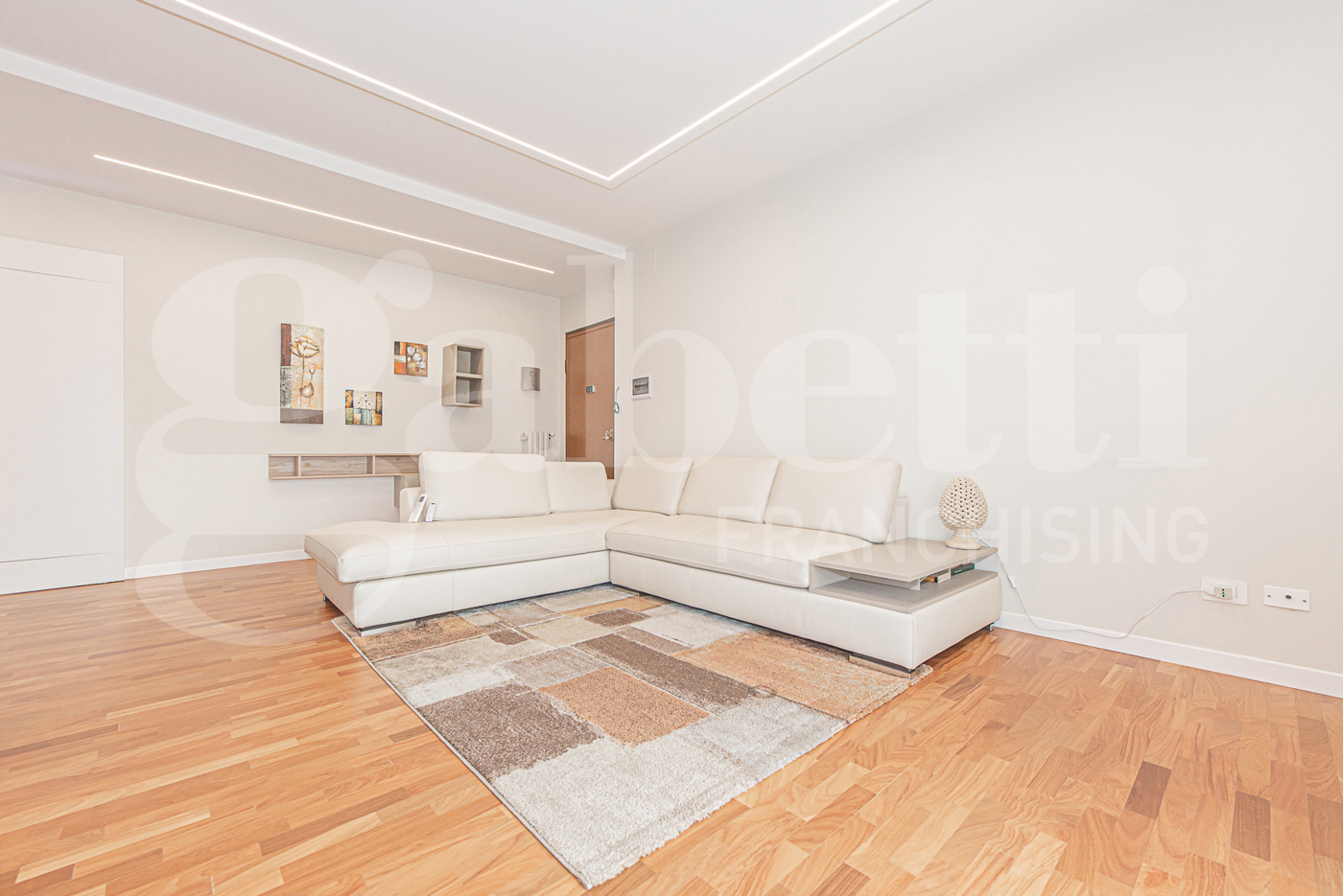 Le finiture di pregio, come la controsoffittatura con luci a led, ed il parquet uniforme valorizzano tutti gli ambienti.