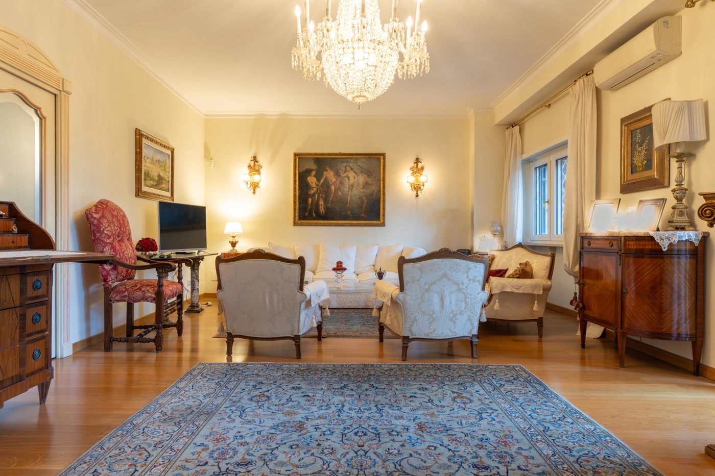 La propriet composta da ampio ingresso, salone doppio, studio, due camere matrimoniali, due bagni, cucina abitabile e ripostiglio.