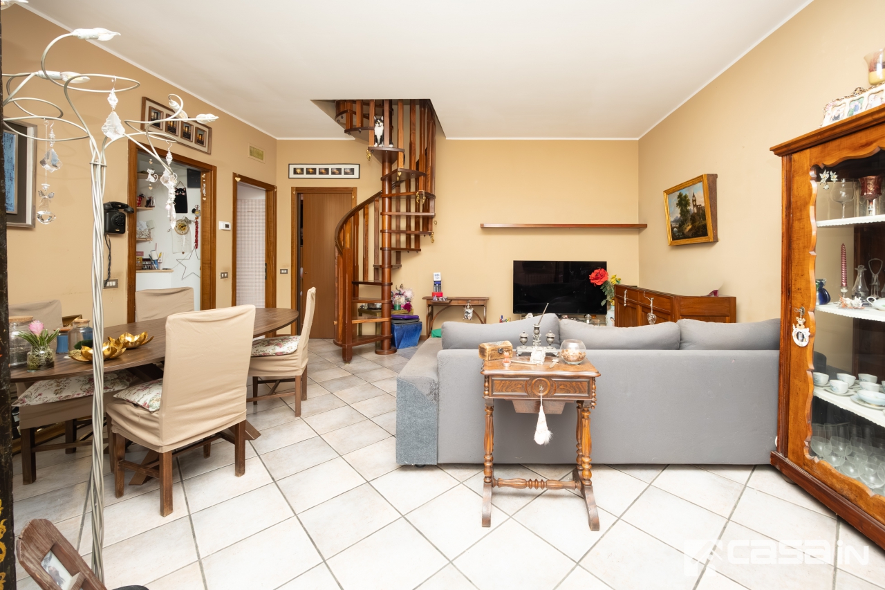 POZZO D'ADDA 3 LOCALI con SOTTOTETTO , CANTINA e BOX DOPPIO: In centro paese, in contesto tranquillo e poco distante da tutti i primari servizi, per gli amanti degli ampi spazi, proponiamo in vendita esclusiva luminoso e caratteristico appartamento di 3 locali e doppi servizi con sovrastante ampio sottotetto rifinito.