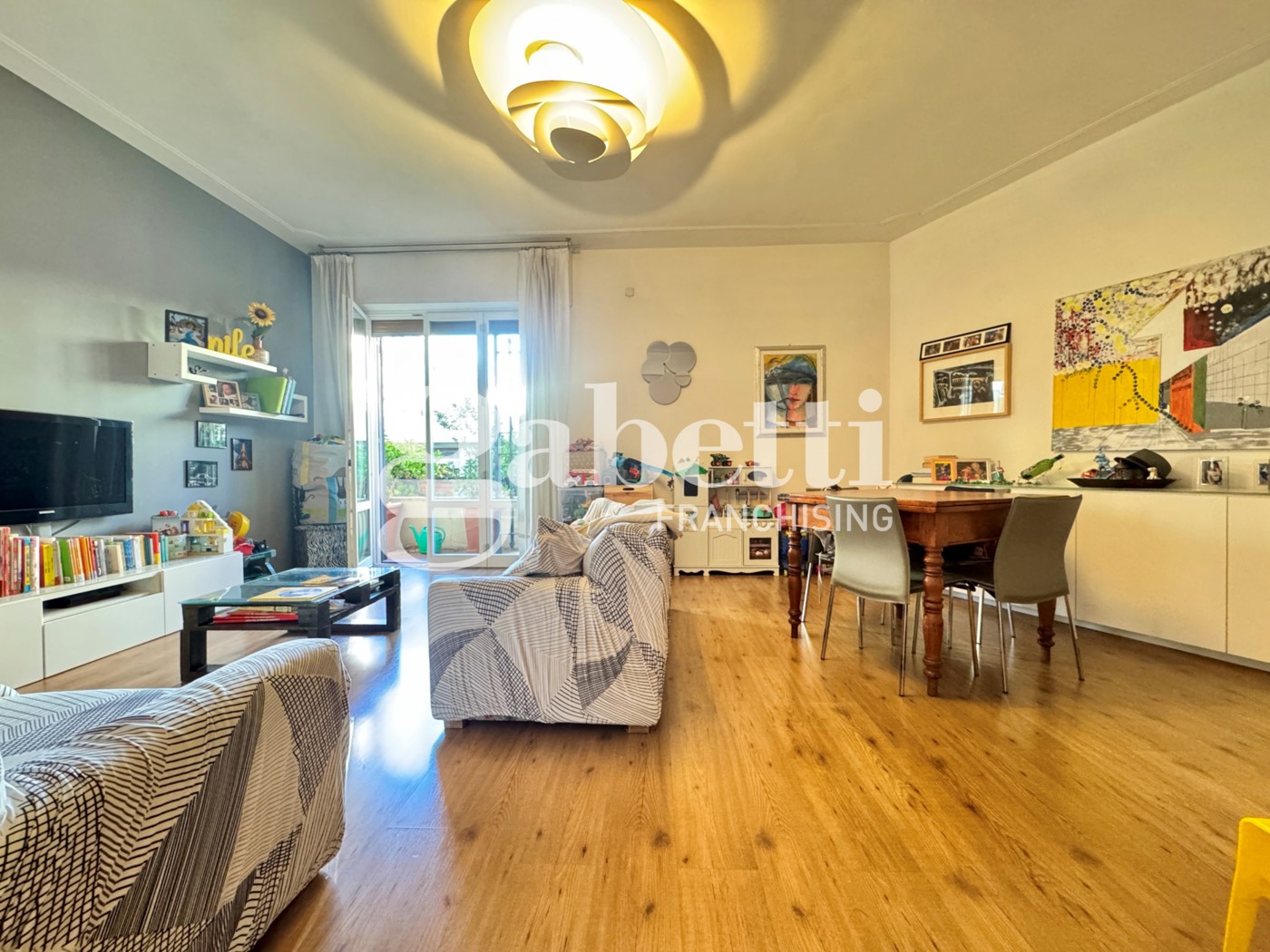 L'appartamento composto da una zona di ingresso aperta sulla grande sala dotata di terrazza, una comoda cucina da cui si accede alla seconda terrazza sulla parte tergale, due grandi camere da letto, due bagni di cui uno riservato alla camera padronale e un comodo ripostiglio, completa la propriet un comodo garage.