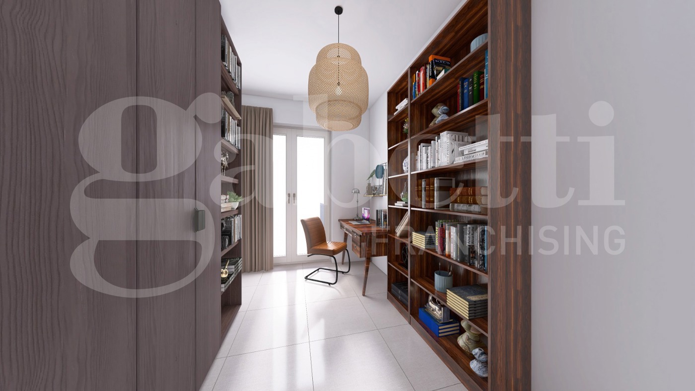 Proseguendo nel disimpegno notte troviamo una camera matrimoniale, una camera singola con accesso al balcone, uno studio e due bagni.