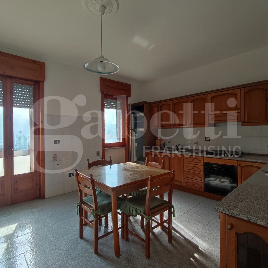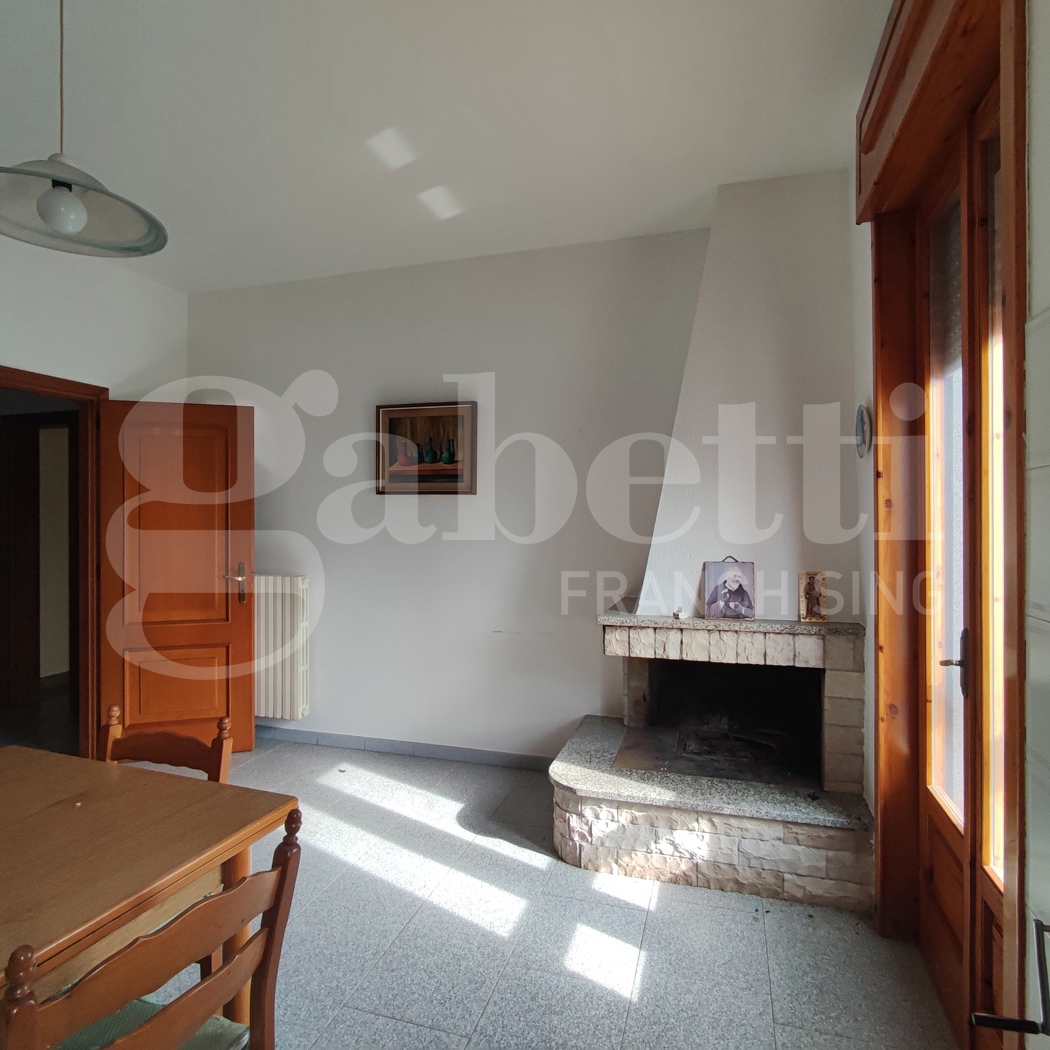 L'appartamento si compone di ingresso, ampio salone, cucina abitabile con camino, due spaziose camere da letto, disimpegno e bagno con relativo antibagno.