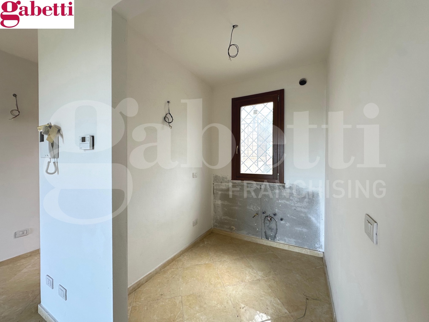 Internamente composto da zona giorno open space con accesso a balcone di 7 mq e terrazza di 5 mq, cucinotto finestrato, camera e bagno finestrato oltre a garage.