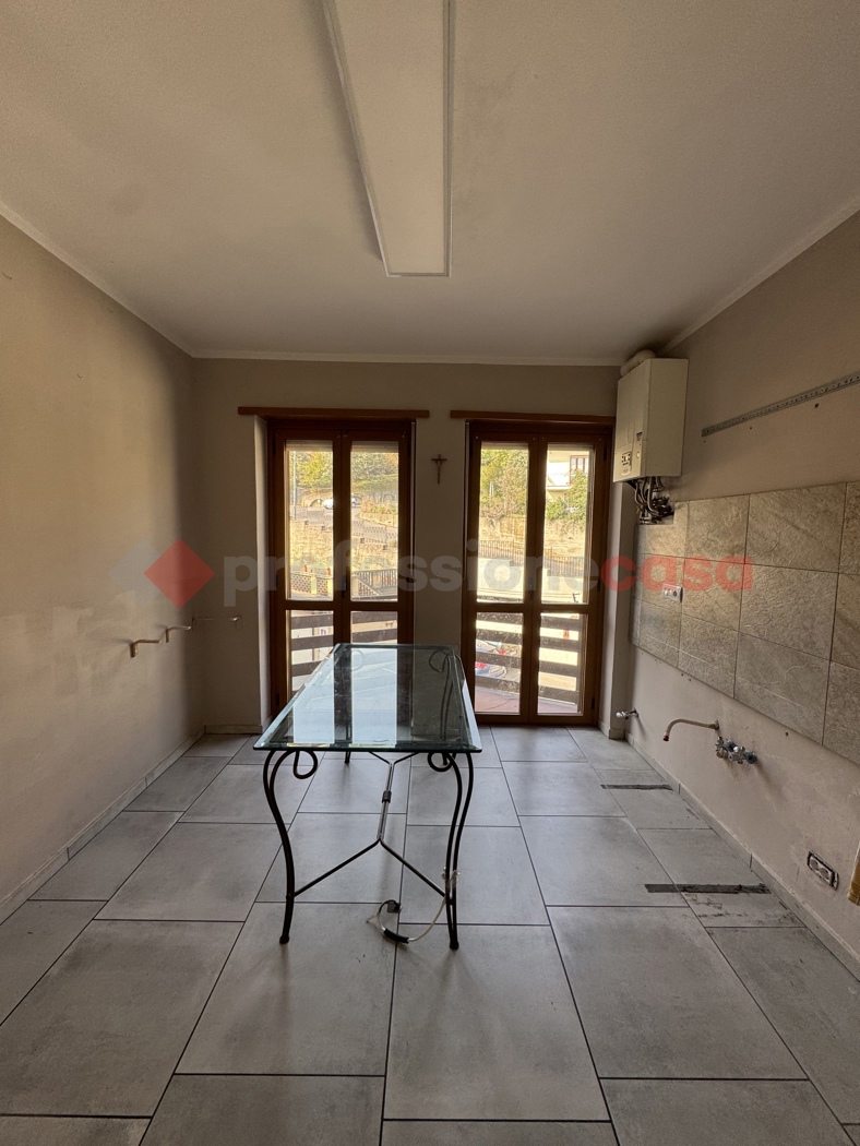 Limmobile si apre su un accogliente disimpegno che conduce alla cucina abitabile, dotata di balcone, e a un ampio soggiorno particolarmente luminoso, con ottima esposizione e una piacevole vista sul verde collinare.