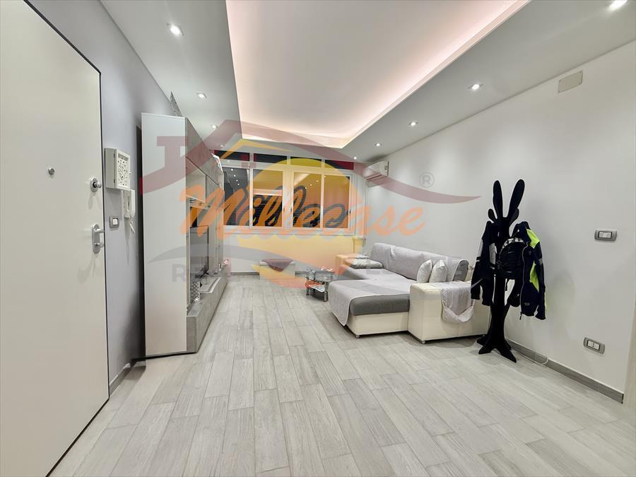 L'immobile è posto al primo piano ed è cosi composto: Ingresso su ampia zona living composta da un ambiente unico cucina - soggiorno, un balcone chiuso a veranda, camera da letto principale, cameretta, ampio bagno.