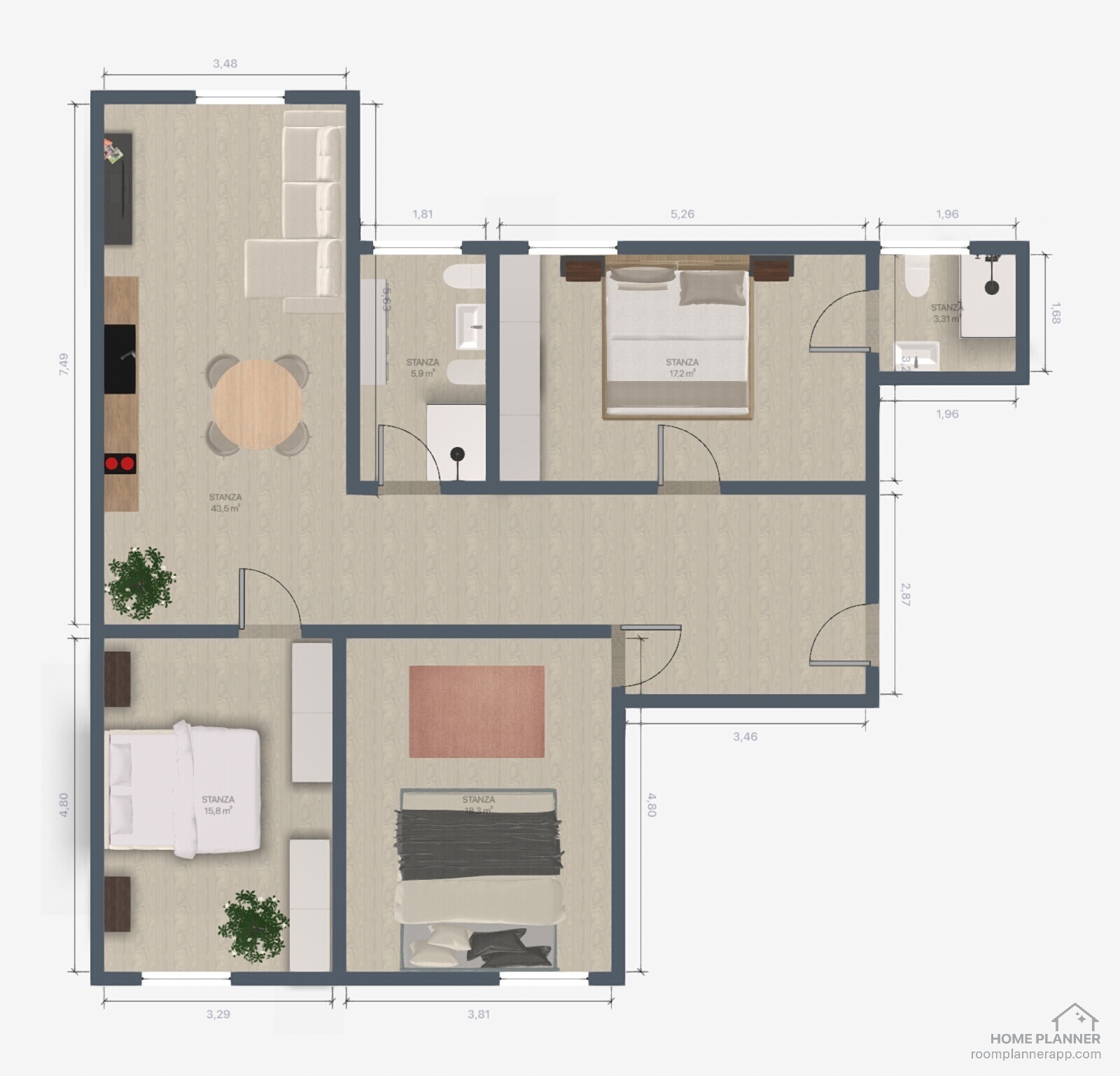 Limmobile risulta molto luminoso grazie alla doppia esposizione est-ovest, ed è così composto ampio ingresso, tre camere da letto , soggiorno cucina, doppi servizi finestrati e due ampi balconi . La soluzione è ideale per famiglie che cercano quattro locali e desiderano personalizzare gli spazi interni in base alle proprie esigenze.