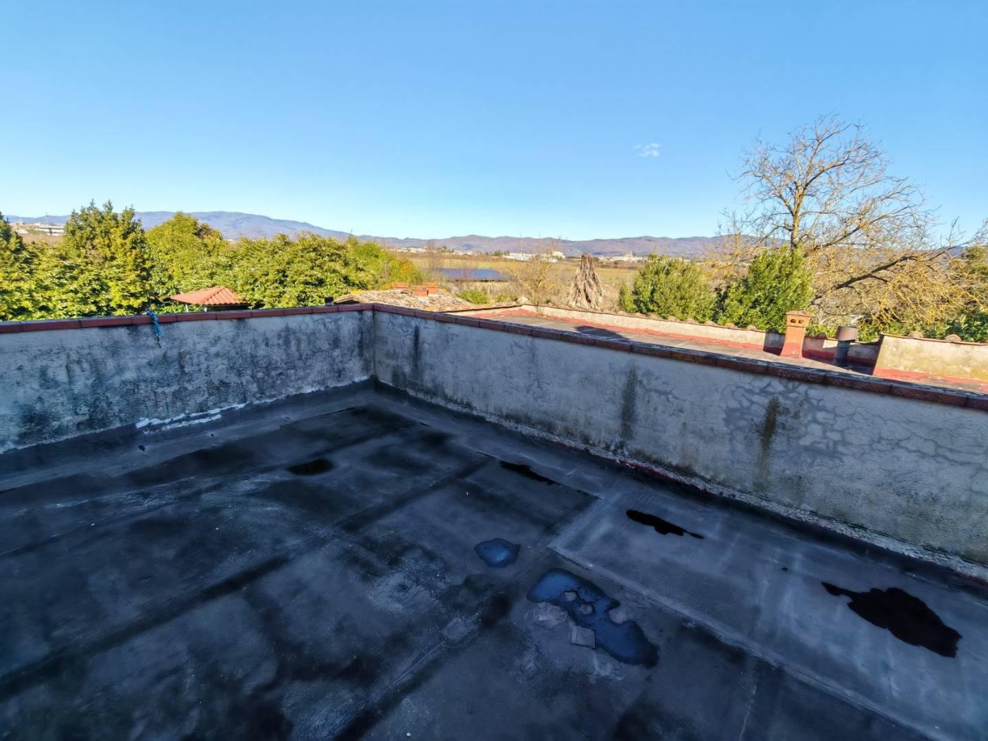 E' composto al piano terra da ingresso, soggiorno grande, cucina abitabile e bagno/lavanderia, al piano superiore ci sono due camere matrimoniali, un bagno con doccia finestrato, un balcone e una grande terrazza che affacciano nel verde e hanno la vista del Duomo di Arezzo.