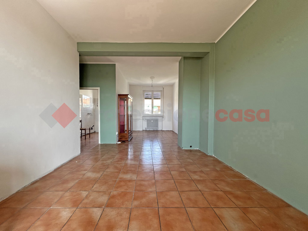 Composto da ingresso sul soggiorno doppio con balcone, cucina separata con balcone, ampio ripostiglio, due camere matrimoniali e una singola, un bagno con vasca nel quale saranno a breve sostituiti i sanitari.