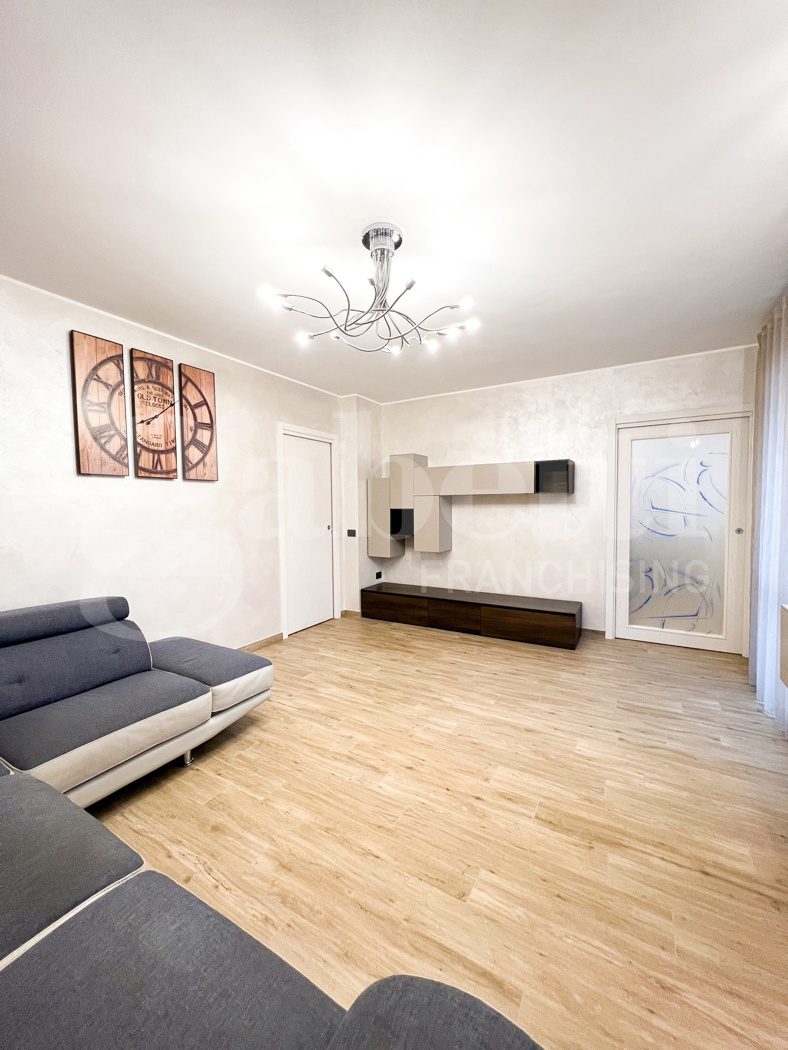 Lingresso allappartamento si apre su un ampio e luminoso soggiorno, proseguendo nella zona giorno si trova una cucina abitabile e una camera da letto singola, perfetta per essere utilizzata anche come studio.