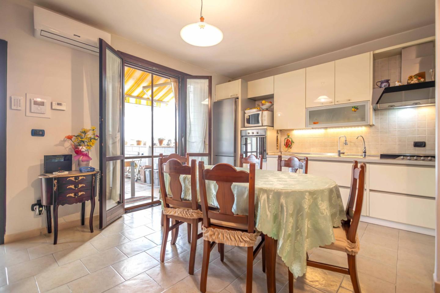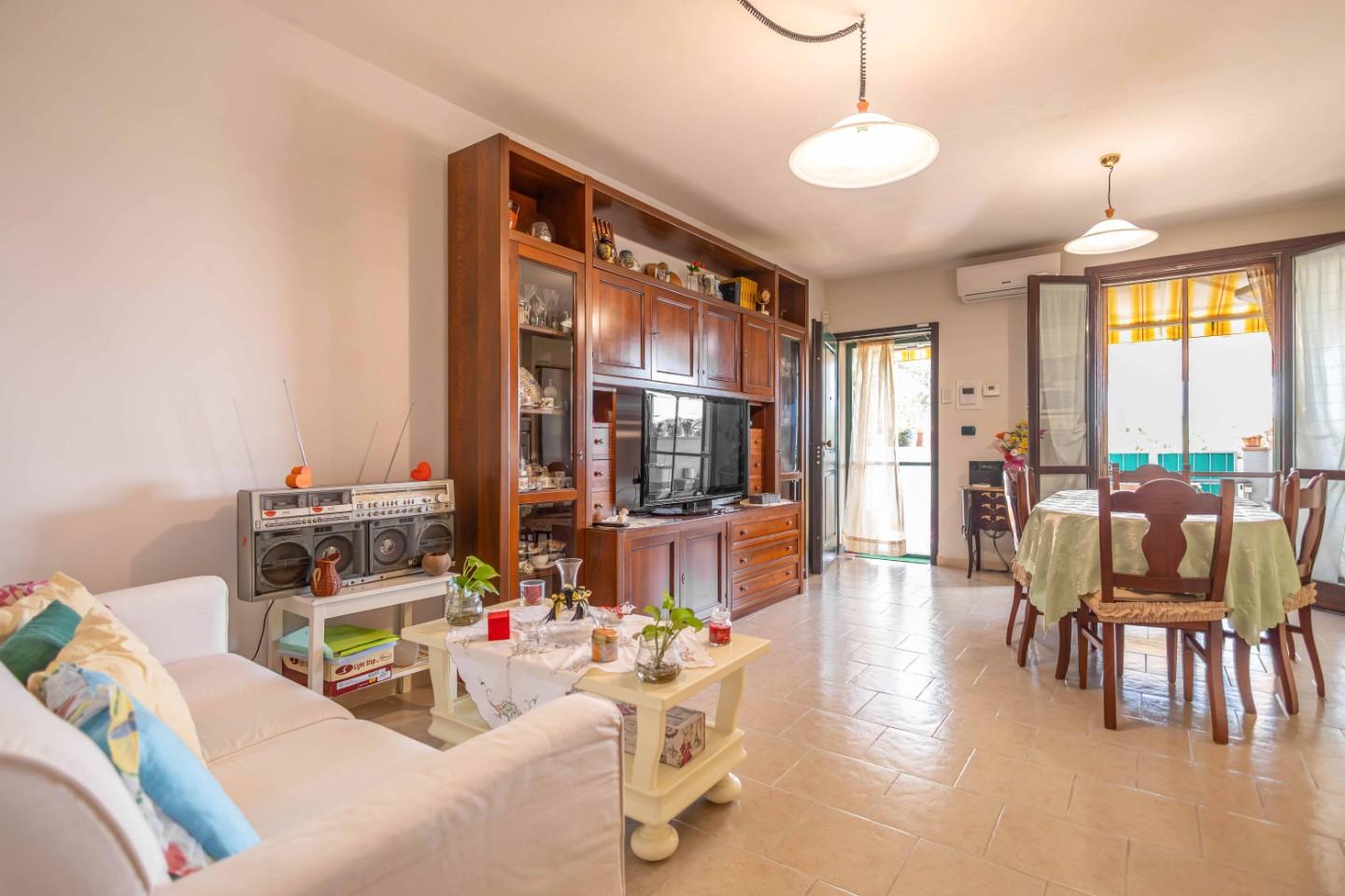 Ingresso in ampio soggiorno/pranzo con lato cottura adatta per le cene in famiglia e con gli amici, disimpegno notte, camera matrimoniale, cameretta, ripostiglio e bagno.