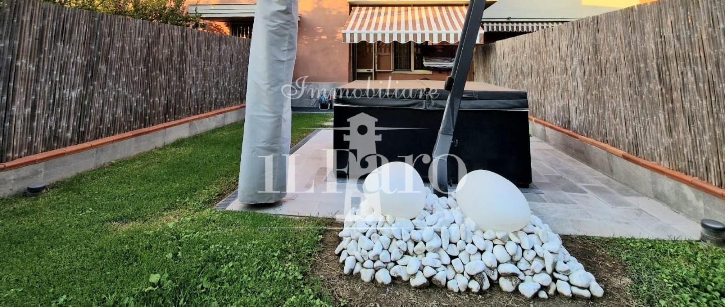 Nel giardino frontale è stata installata una bella vasca idromassaggio dove poter trascorrere le calde serate estive.
