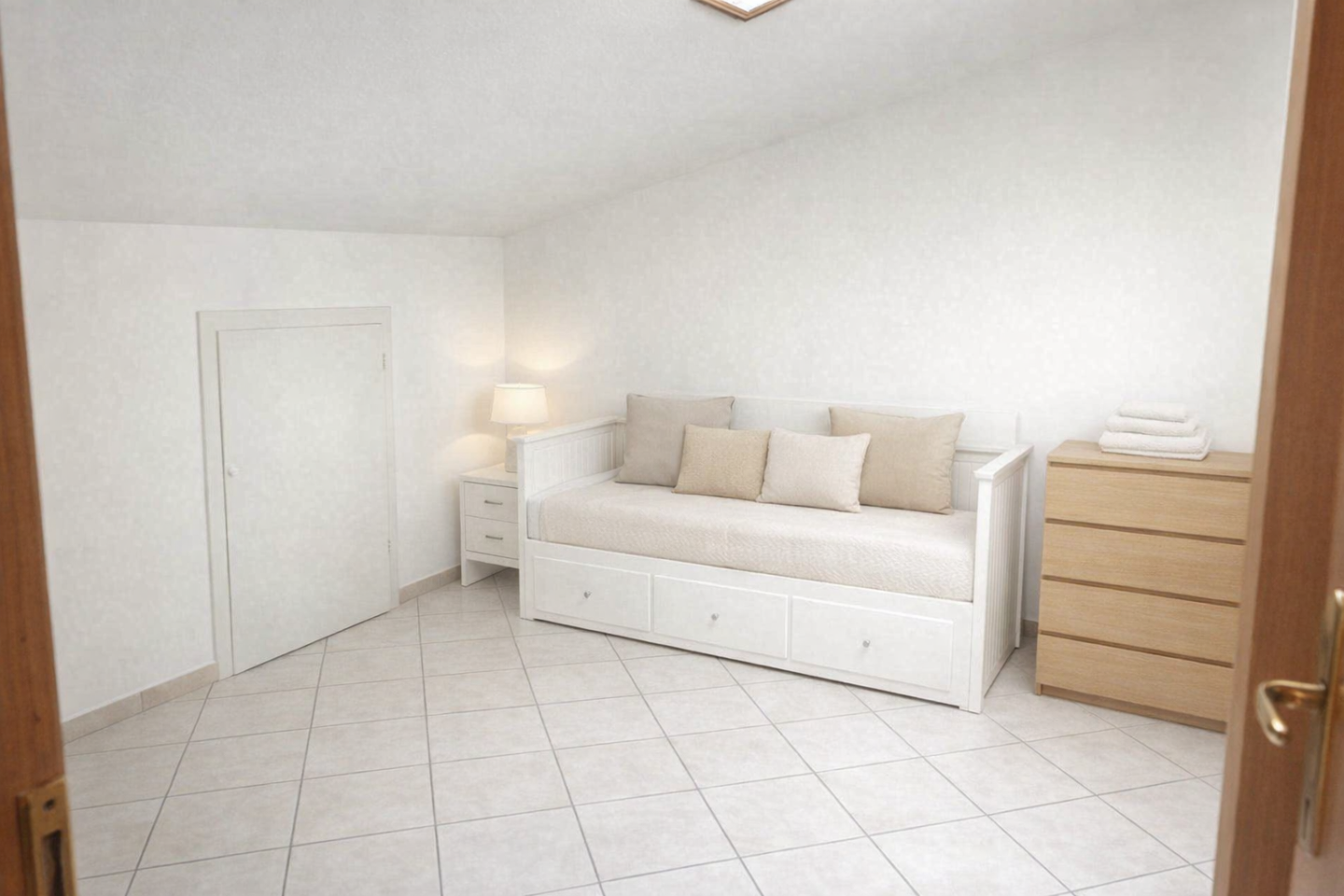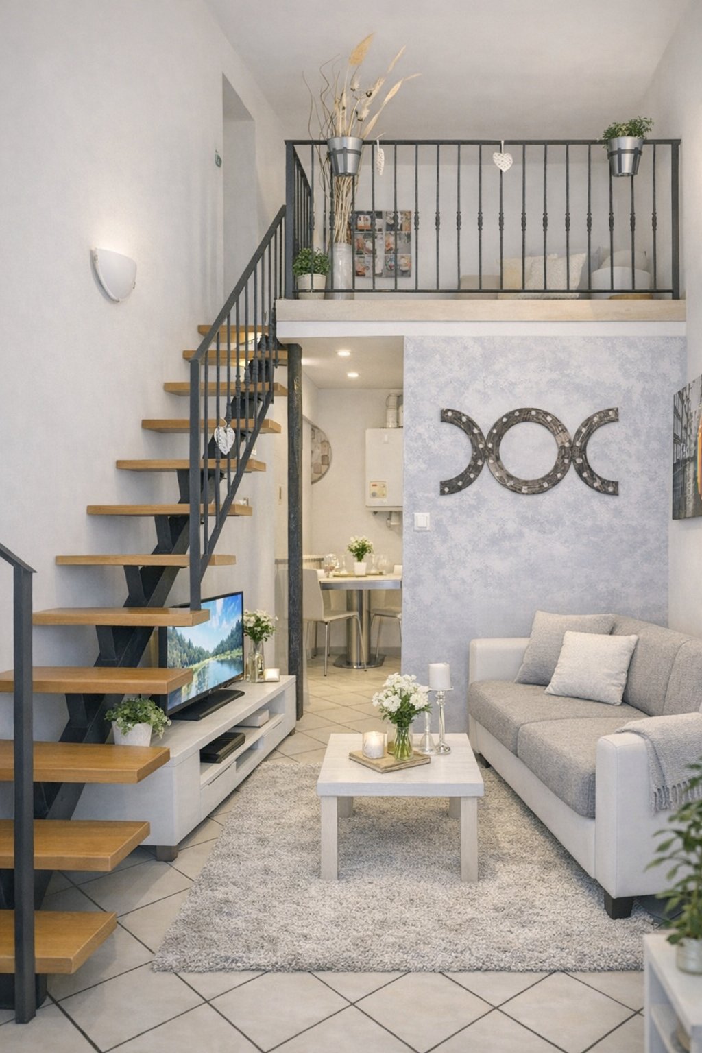 Tramite la scala nel soggiorno si giunge sul soppalco e ad una seconda camera singola.
