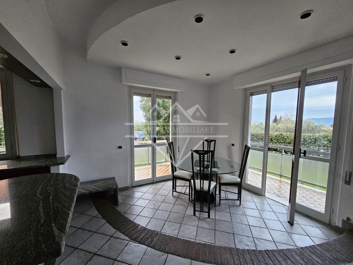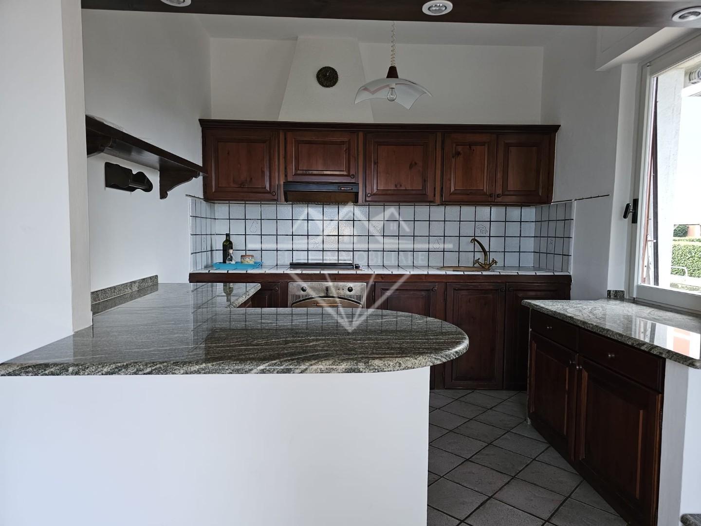 Il bagno, elegante e funzionale, presenta un pavimento in marmo e una grande doccia?. La zona giorno è un accogliente open space con cucina arredata (come da foto) affacciata sulla sala da pranzo e soggiorno, ambiente reso particolarmente luminoso grazie alle tre aperture sul giardino.
