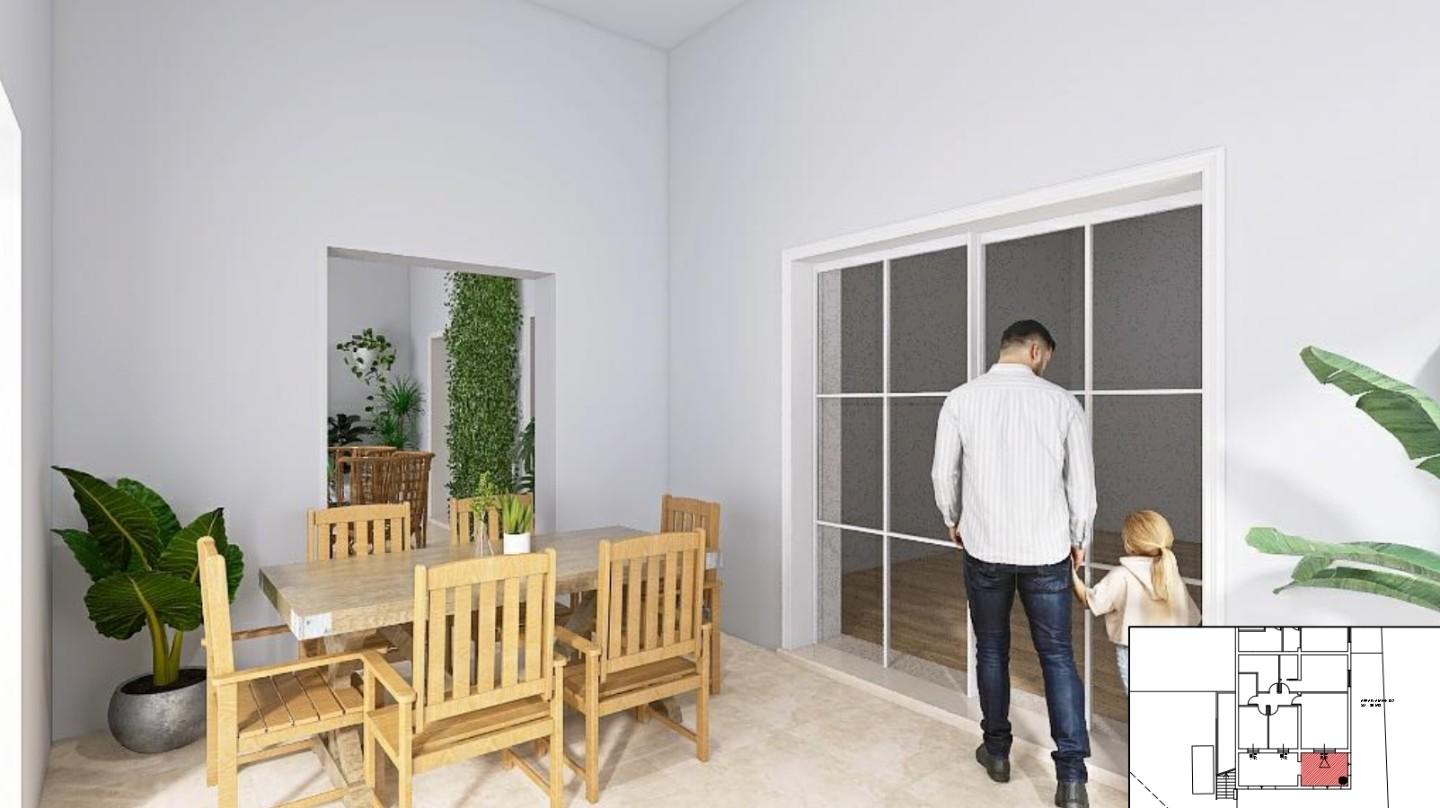 L'appartamento che si sviluppa su una superficie di mq.115 è composto da un grande soggiorno/pranzo con angolo cottura, una camera matrimoniale, due camere singole, due bagni e stanza lavanderia.