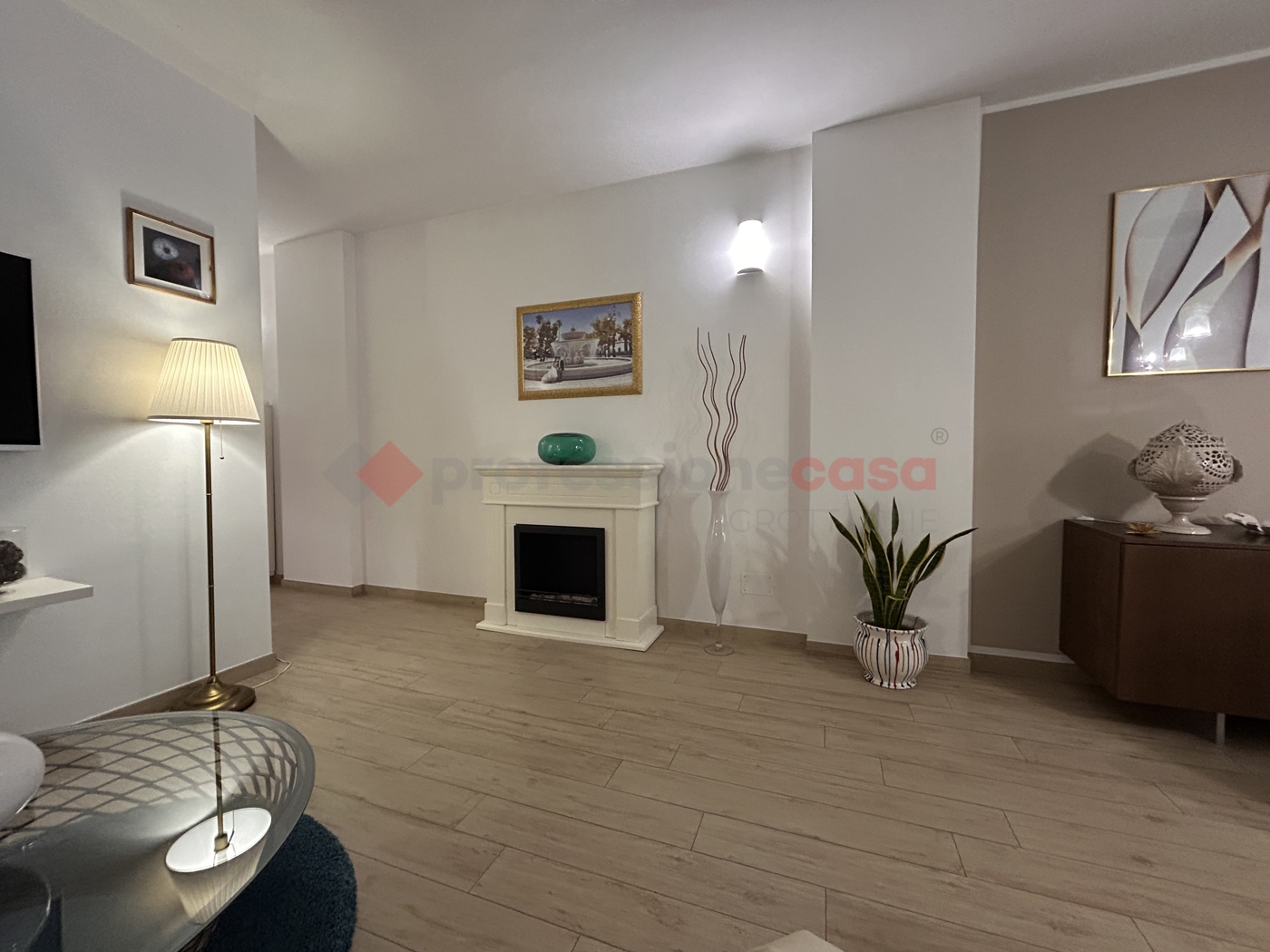 Limmobile, della superficie di circa 100 mq, si apre su un ampio living doppio, valorizzato dalla presenza di una porta finestra con accesso a un balconcino con affaccio su strada.