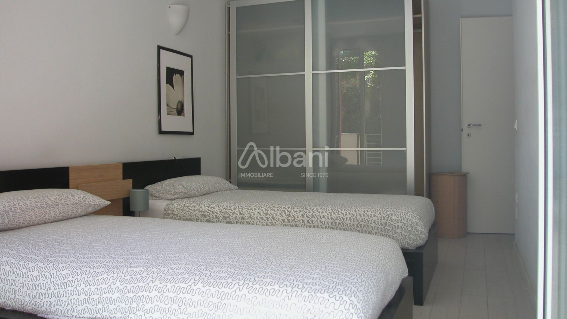Lappartamento, completamente arredato, è dotato di giardino privato di 85 mq, portico di 10 mq ideali per momenti di relax allaperto.
