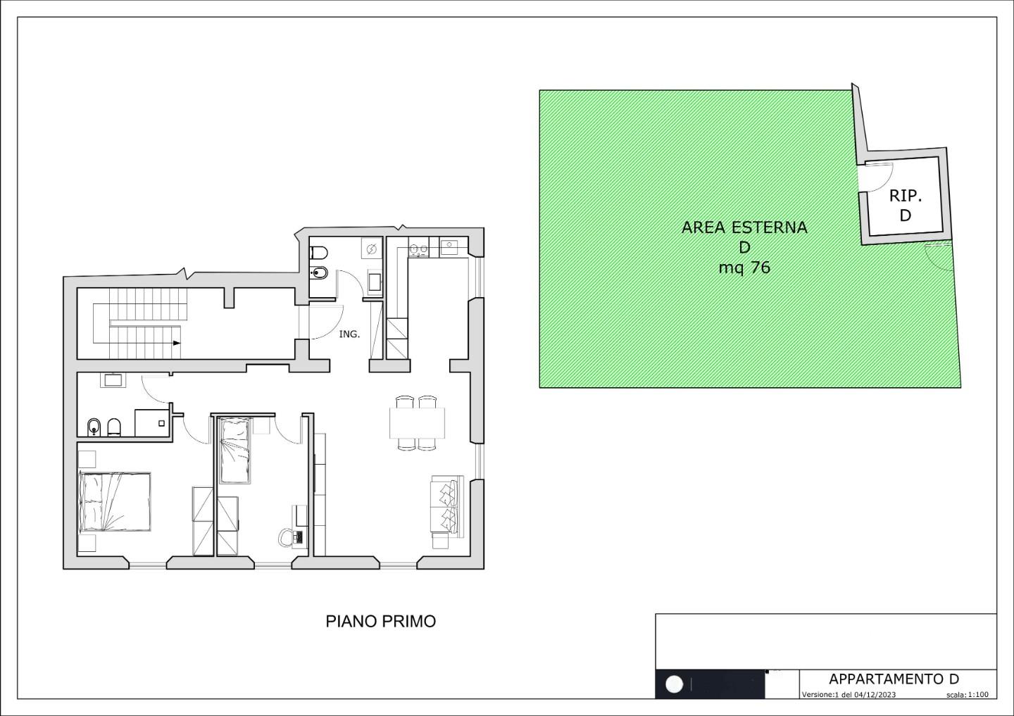 L'appartamento è corredato da resede esclusiva di m 76 , ripostiglio in muratura e due posti macchina nell'area comune.