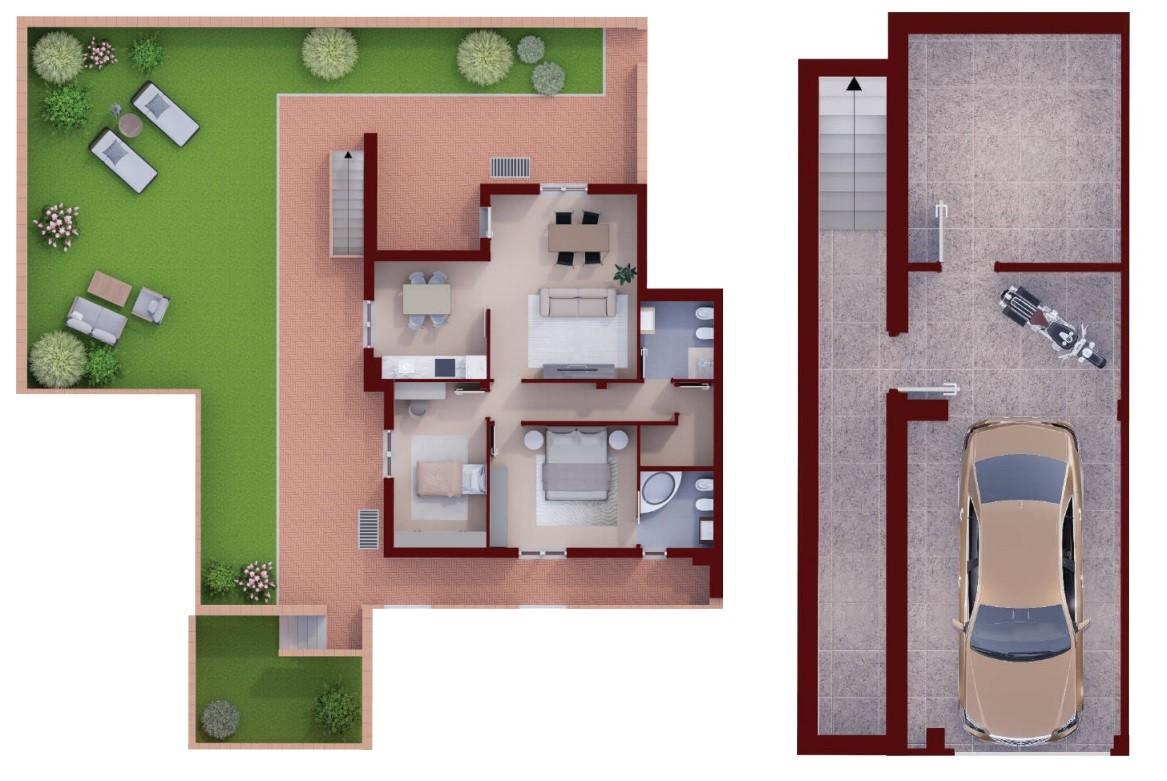 Limmobile, in ottimo stato di manutenzione, si compone di: ingresso su ampio soggiorno e cucina abitabile con accesso diretto al giardino Zona notte comprende, una camera matrimoniale con bagno en suite finestrato, una camera media, un secondo bagno e ripostiglio.