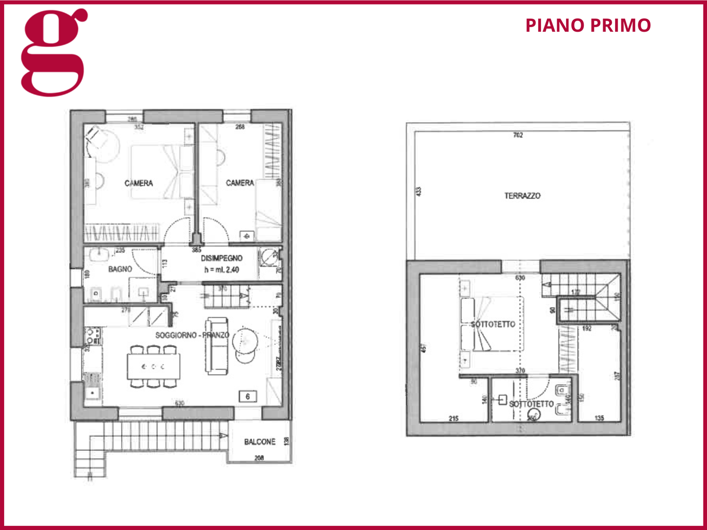 Al secondo livello mansardato presente una camera matrimoniale ed un bagno, a completare questo livello troviamo un meraviglioso terrazzo di circa 30 mq. dove trascorrere piacevoli momenti durante le stagioni pi miti. Questa soluzione inoltre dotata di garage al piano interrato.