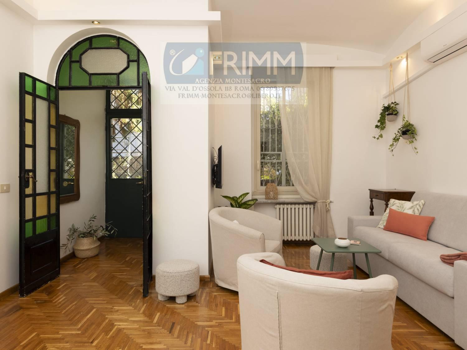 CITTA' GIARDINO MONTESACRO | ELEGANTE APPARTAMENTO, RISTRUTTURATO VIA MONTE ALTISSIMO- Proponiamo in VENDITA nel cuore di Citt Giardino e pi precisamente in via Monte Altissimo a pochi minuti a piedi dalla metropolitana B1 Conca dOro, Piazza Sempione e il Parco delle Valli, un appartamento di 144 mq disposto su di un unico livello al piano terra con giardino, con la seguente composizione: ingresso, soggiorno, cucina abitabile, disimpegno, 3 camere matrimoniali, 2 bagni, sottoscala, giardino di 100 mq. Riscaldamento autonomo, aria condizionata.