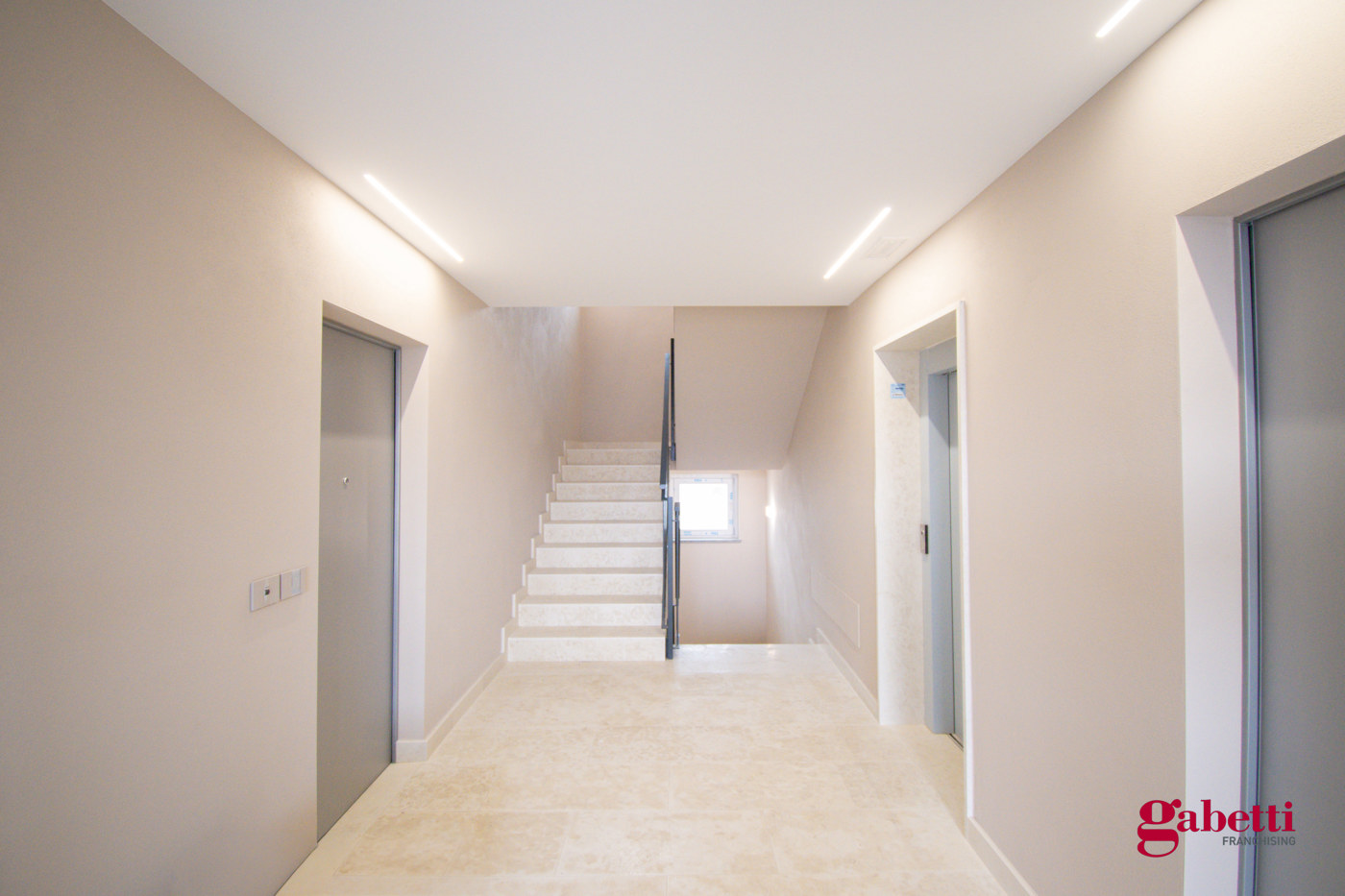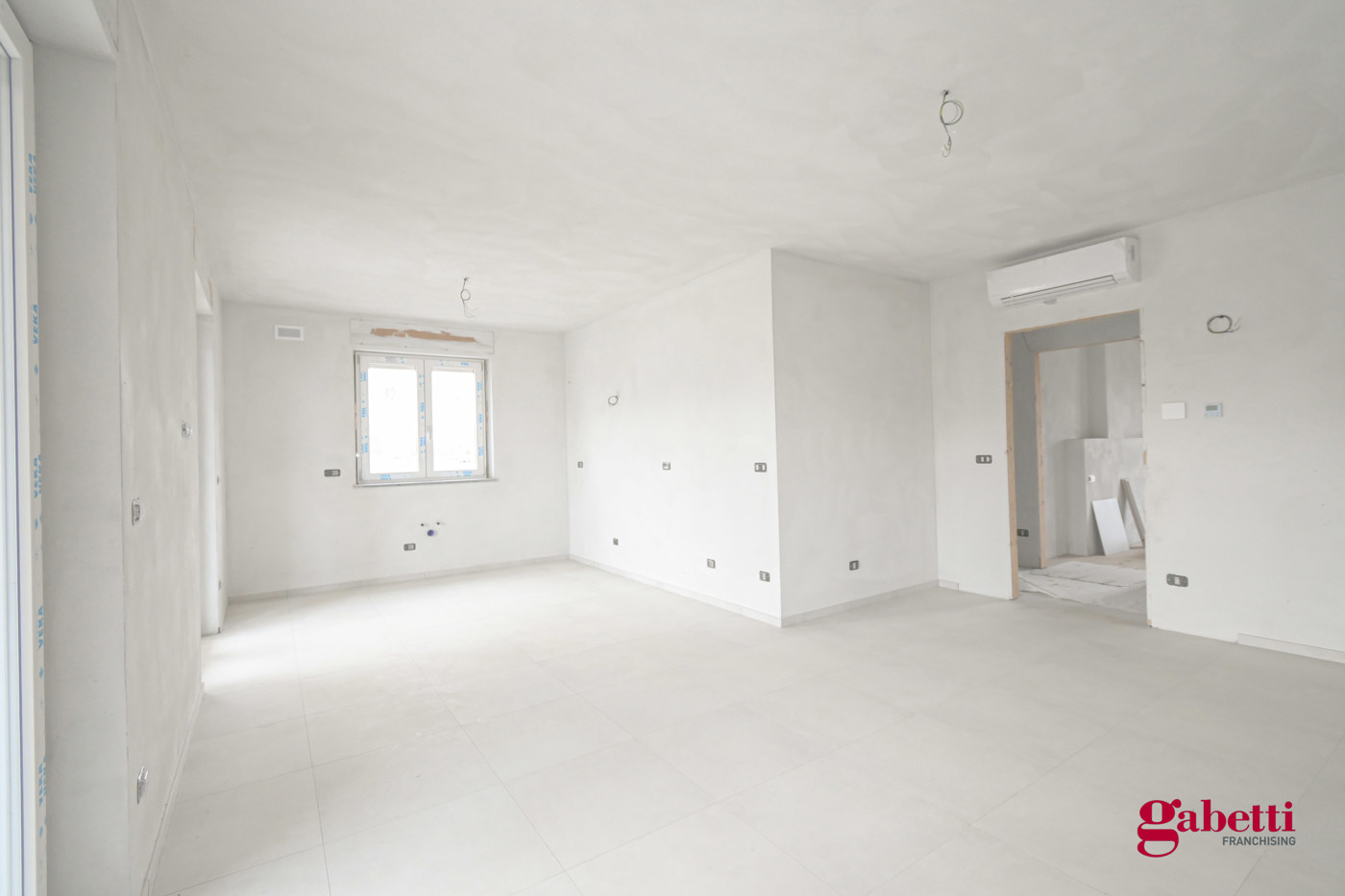 Situato al piano terra di un complesso residenziale signorile in costruzione, l'appartamento si compone con ingresso su zona giorno open - space, disimpegno, due camere da letto, due bagni, ripostiglio e l'area esterna esclusiva, ad uso giardino, portico e lastrico solare.