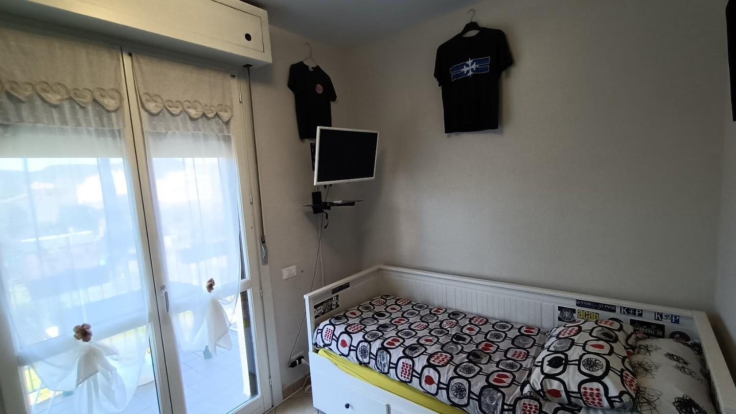 Cucina-soggiorno, disimpegno notte, ripostiglio, bagno con doccia, camera matrimoniale, cameretta con balcone.