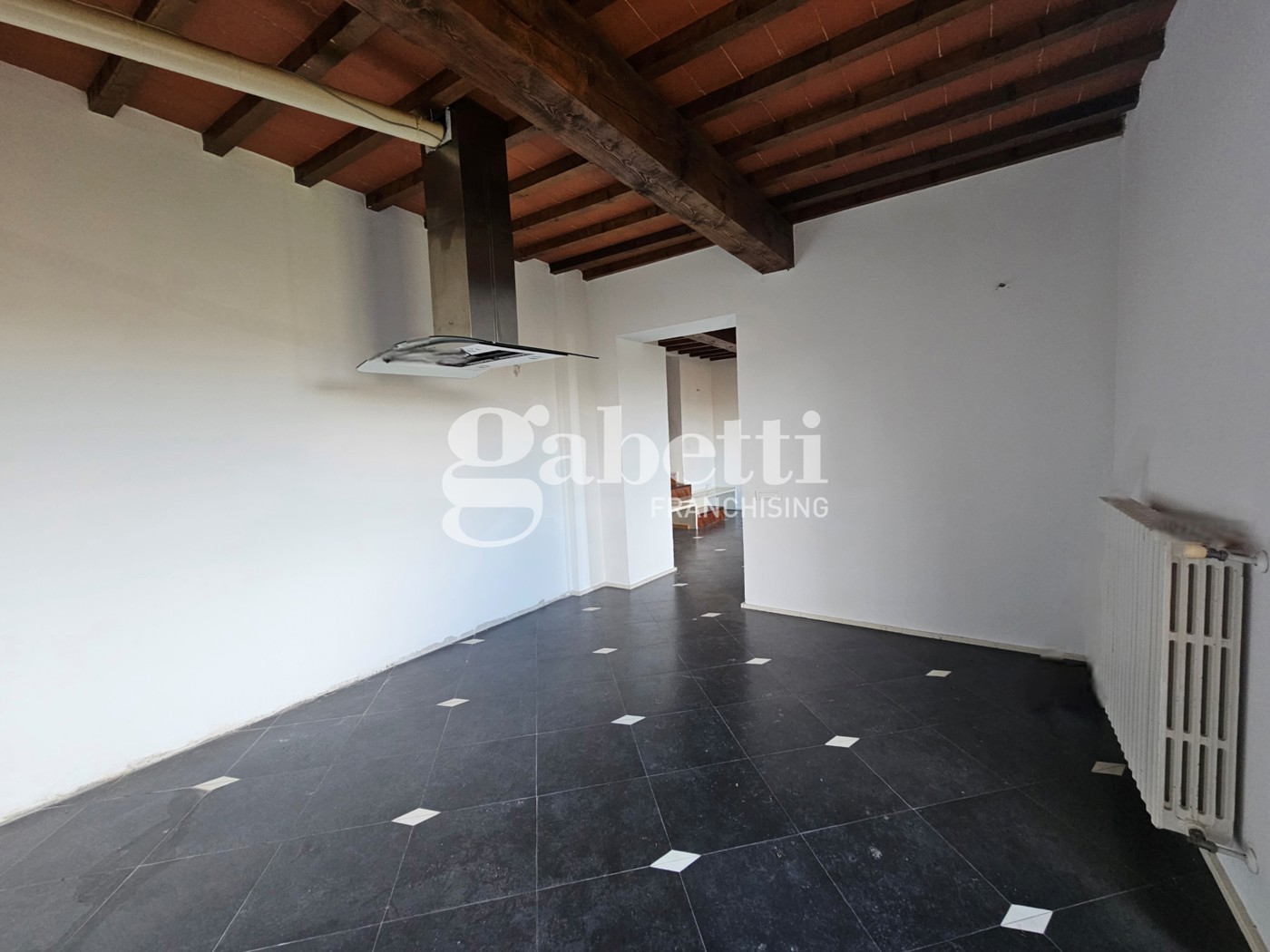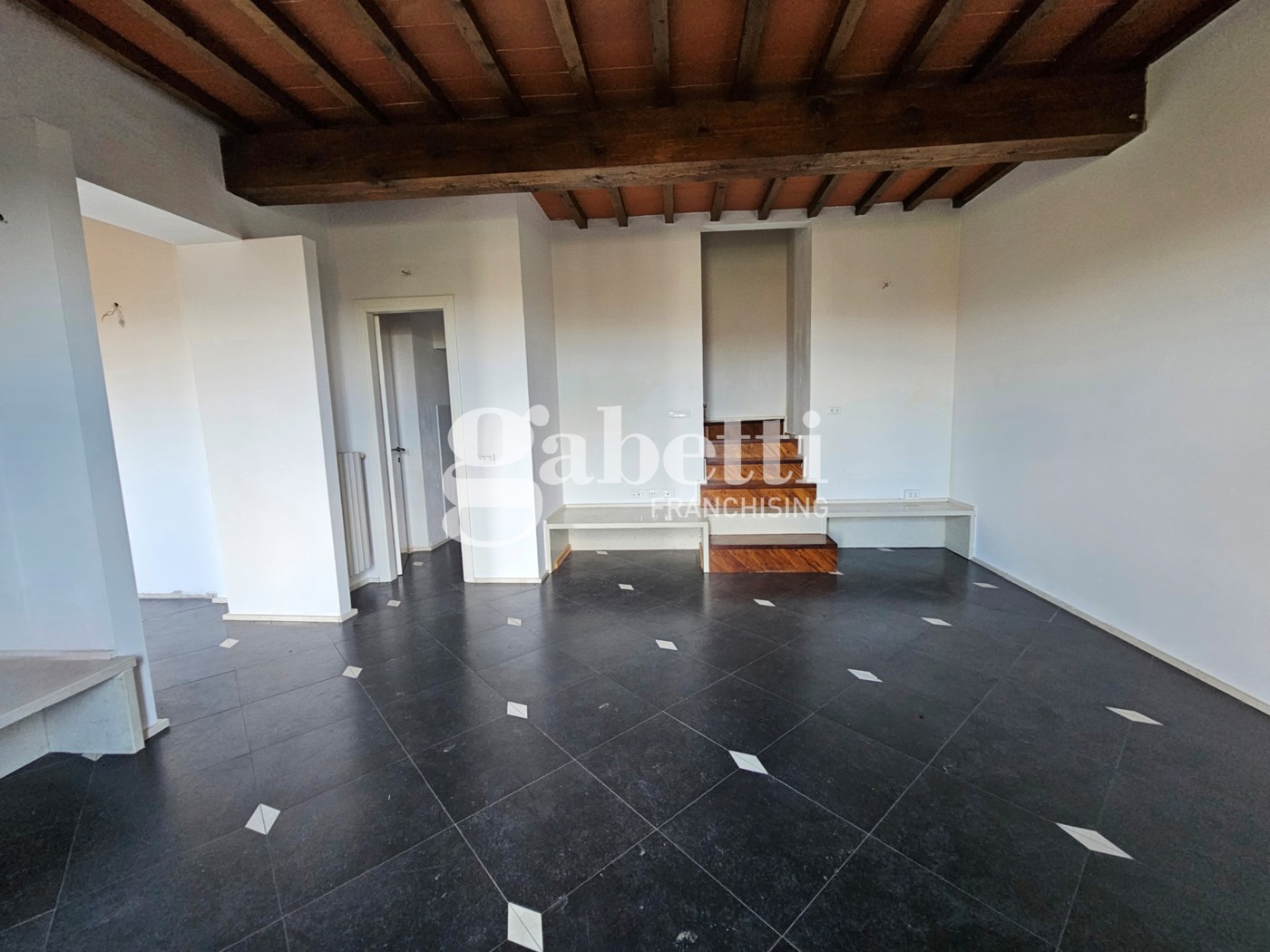Immobile ristrutturato nel 2010 con parquet per terra e travi a vista, elementi che donano calore e carattere agli ambienti.