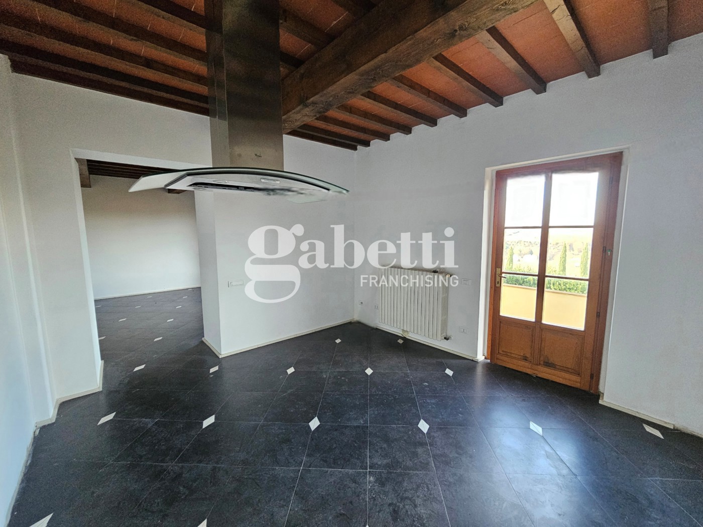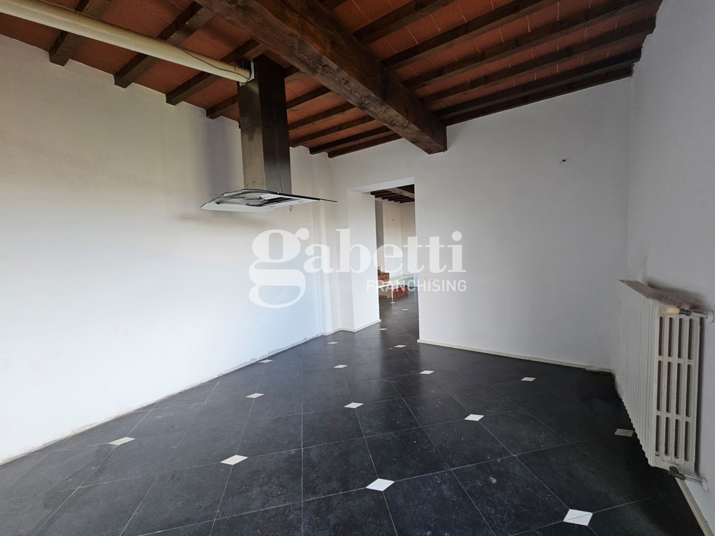 Immobile ristrutturato nel 2010 con parquet per terra e travi a vista, elementi che donano calore e carattere agli ambienti.