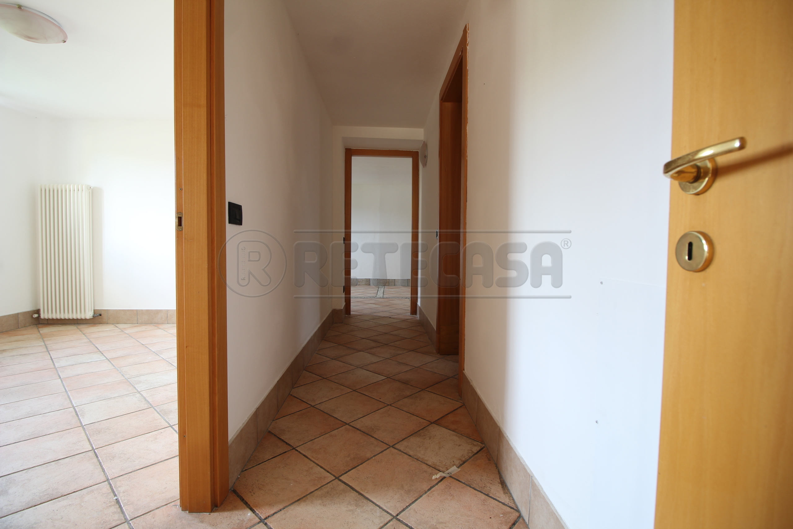 Ci accoglie la zona giorno che guarda sul giardino esclusivo, il corridoio porta in zona notte qui incontriamo la spaziosa camere matrimoniale, la camera tripla e il bagno finestrato con doccia.