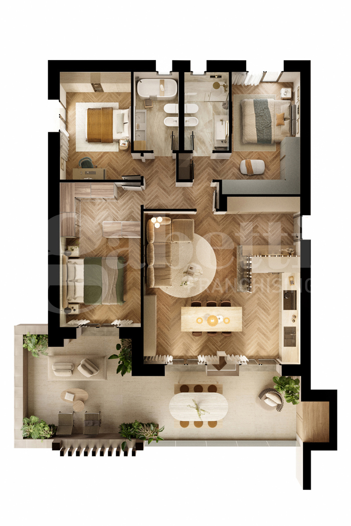 Le immagini sono state realizzate sulla base del progetto esecutivo con finiture e materiali previsti nel capitolato delle opere.