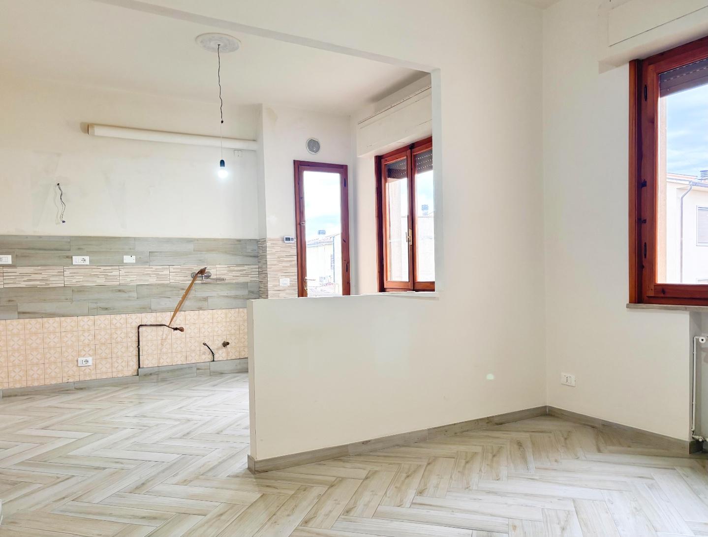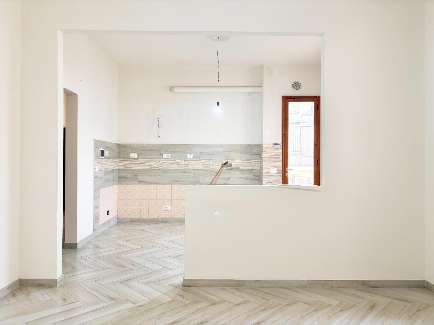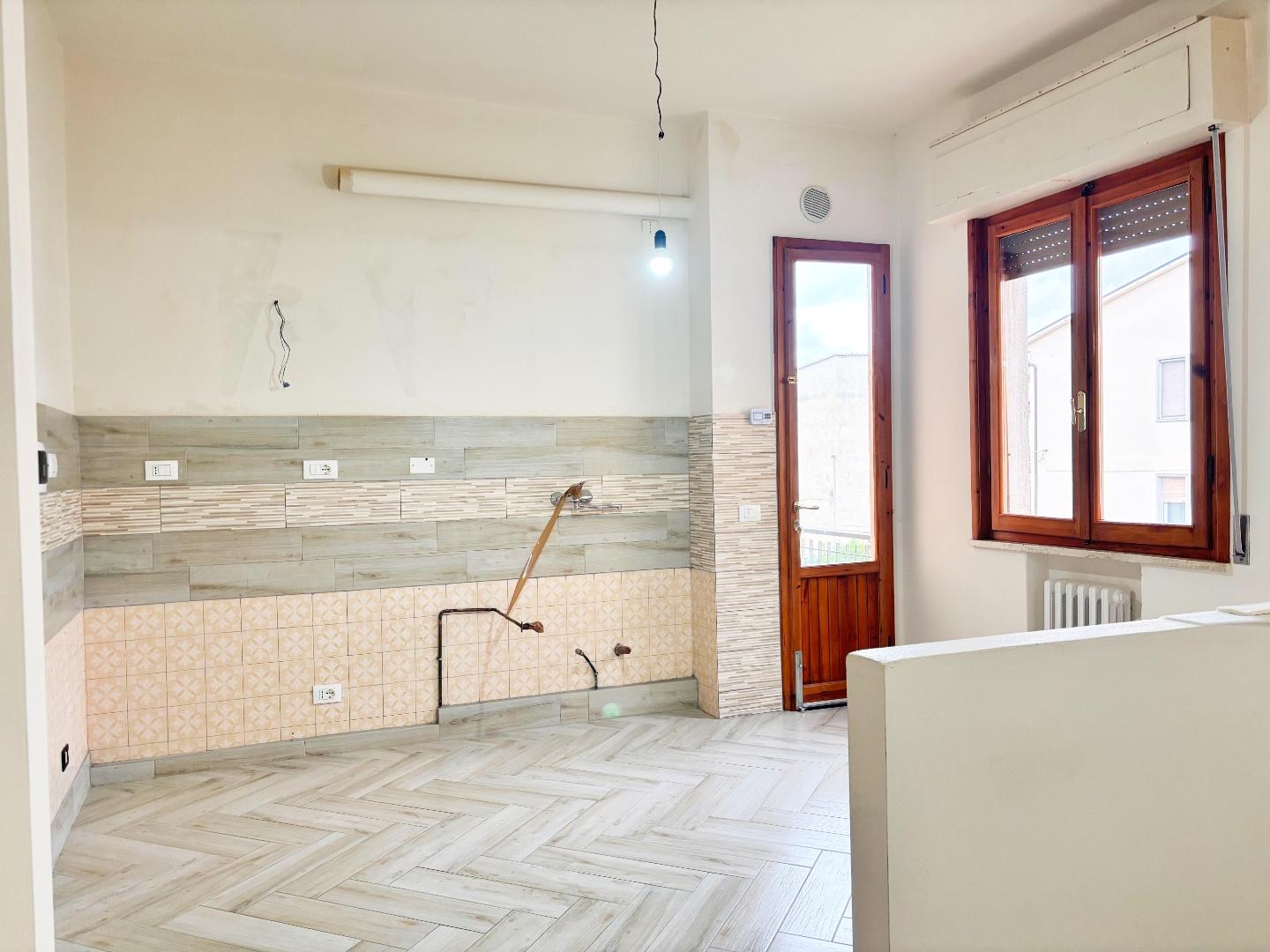 Labitazione è composta da: Ingresso-disimpegno Cucina abitabile e soggiorno a vista Due camere da letto matrimoniali Servizio igienico finestrato Comodo ripostiglio Due terrazze: una nella zona giorno con attacchi per lavatrice e lavabo, e una nella zona notte.